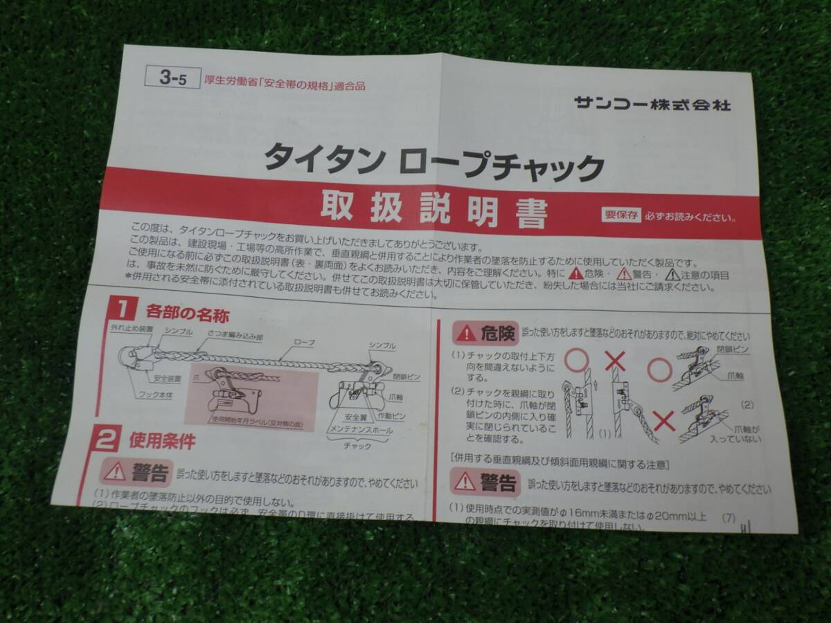 安全帯の規格★タイタン ロープチャック 垂直親綱用グリップ 昇降移動 定位置作業 1本吊り専用 RC 工具 TAITAN サンコー 未使用品 です。