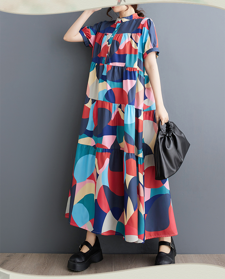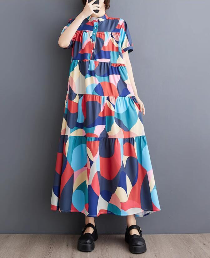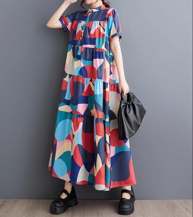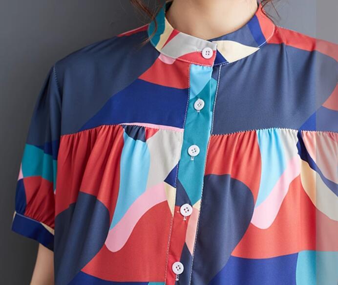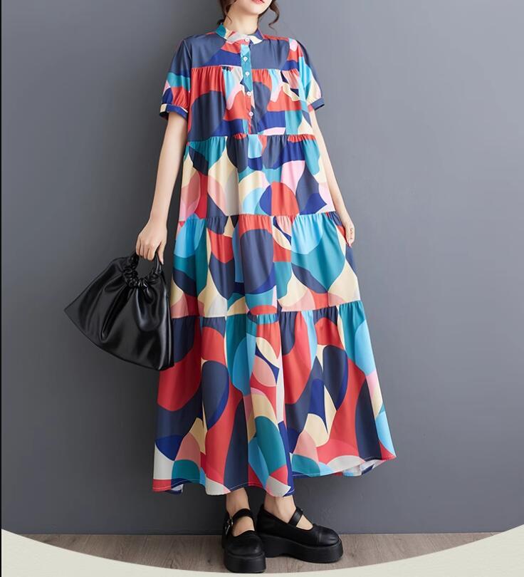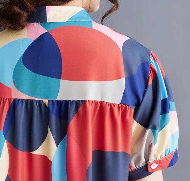 人気新品ゆったり大きいサイズ カジュアル ドット柄 不規則 半袖 シャツワンピース お色選択可