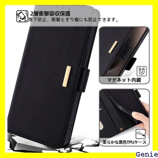 【機能性1:高品質PUレザー】外側のカバーには触感がとても良い高品質のPUレザーを採用します。内側のスマホホルダーは柔軟なTPU素材を採用したソフトケースです。耐衝撃の二重構造で落下の衝撃をうまく吸収し、本体をしっかりと守ります。フリップの表にゴールド色の金具を飾って、ユニークな高級感がアップします。