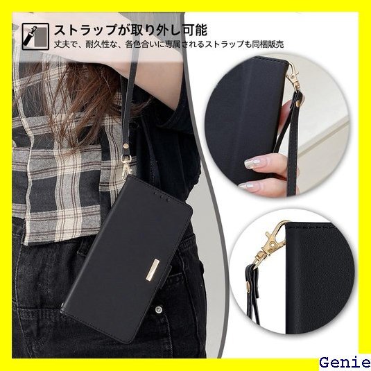 Xperia 10 VI SO-52E ケース 手帳型 ー 肩がけ ストラップ 斜め掛け スマホケース ブラック 24