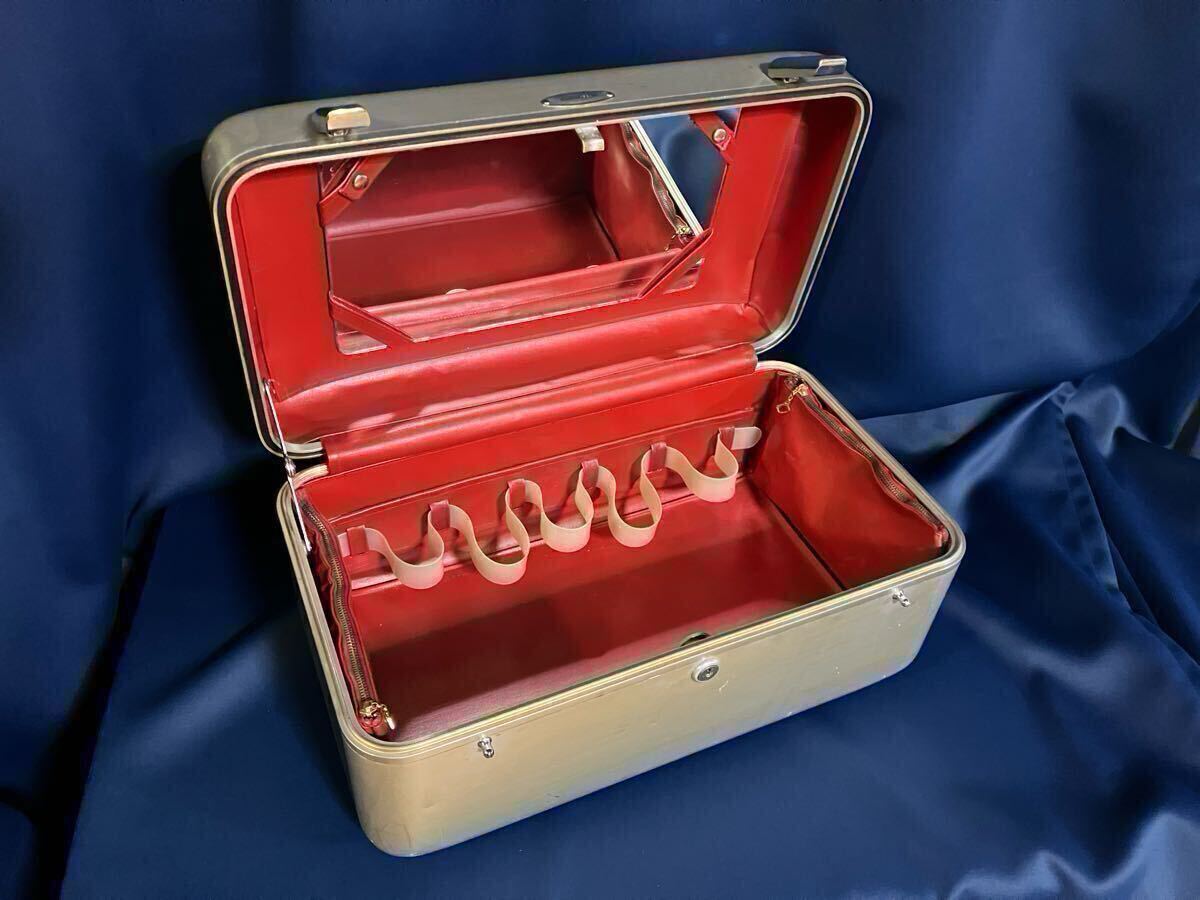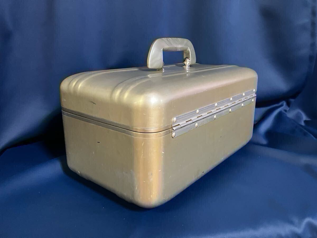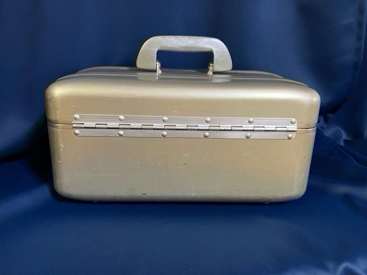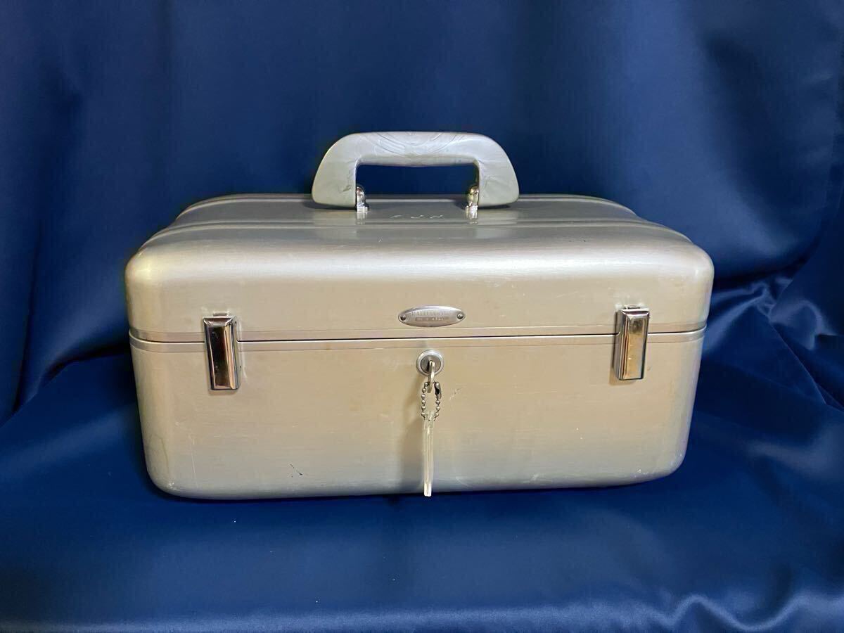 1940年代頃からハリバートン社で製造されたコスメケース、銀ハリ、鍵付です。