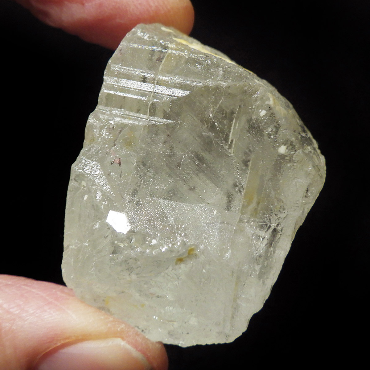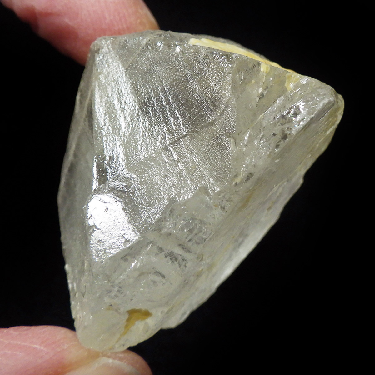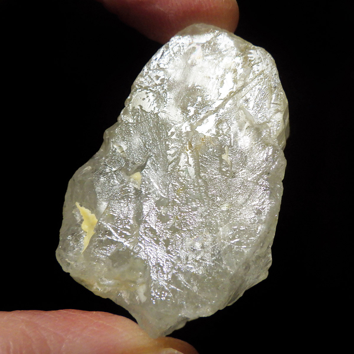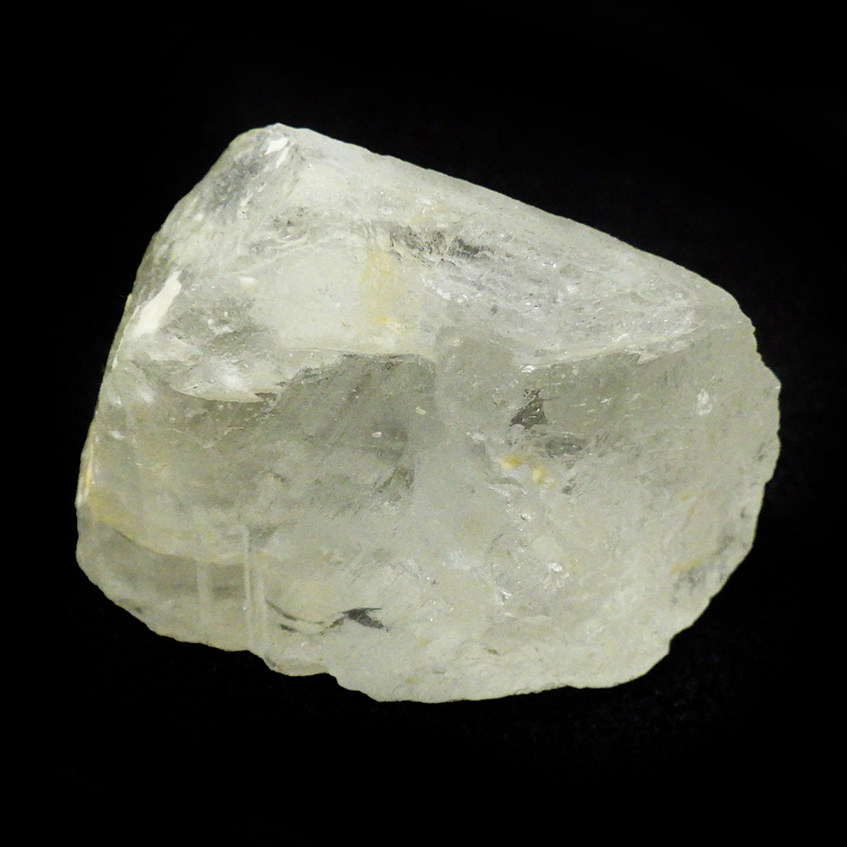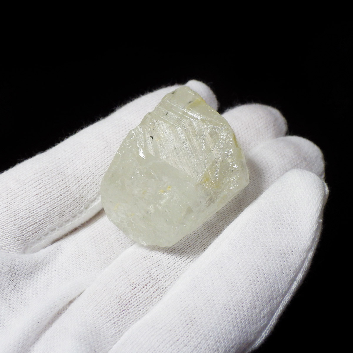 ブラジル産のトパーズ、原石です。トパーズは様々な色を持つ鉱物であり、和名を「黄玉(おうぎょく)」というように、本来は「黄色からオレンジ色」のトパーズがスタンダードなカラーとなっています。このトパーズは基本的にはクリアな透明色ですが、僅かに黄色味がかっております。側面の結晶形がはっきりとしておりませんが、縦に伸びる条線も僅かに見られます。