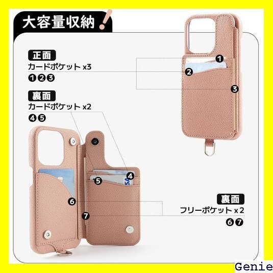 aPanda ショルダーケース iPhone15 15 eケース カット 収納ピンク iPhone 15 Pro 18