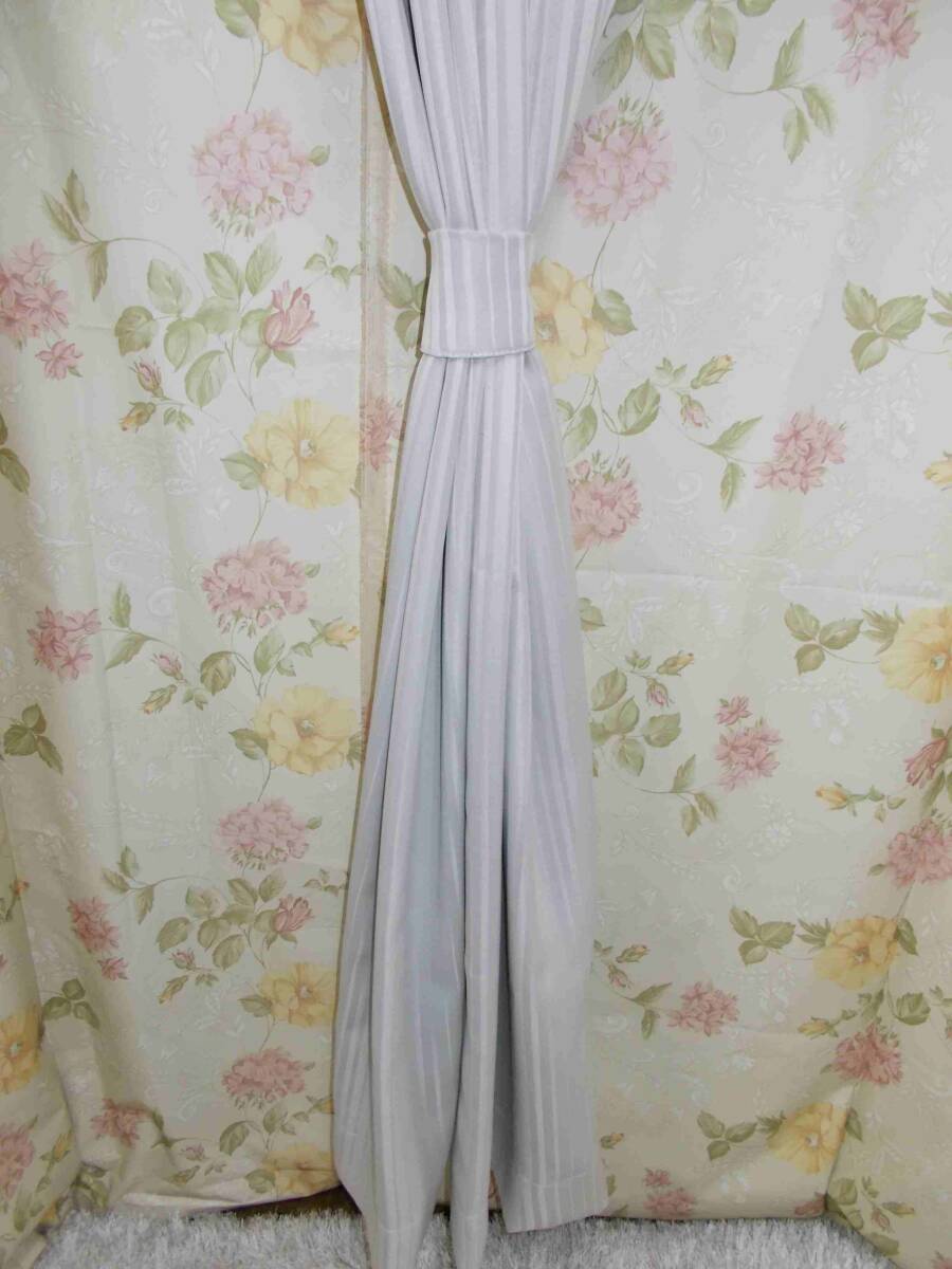 ドレープカーテン2枚組 巾100×高さ135cm 洗濯可能 厚地カーテン 既成カーテン グレー系立て模様 KR15-2 沖縄、諸島部は不可