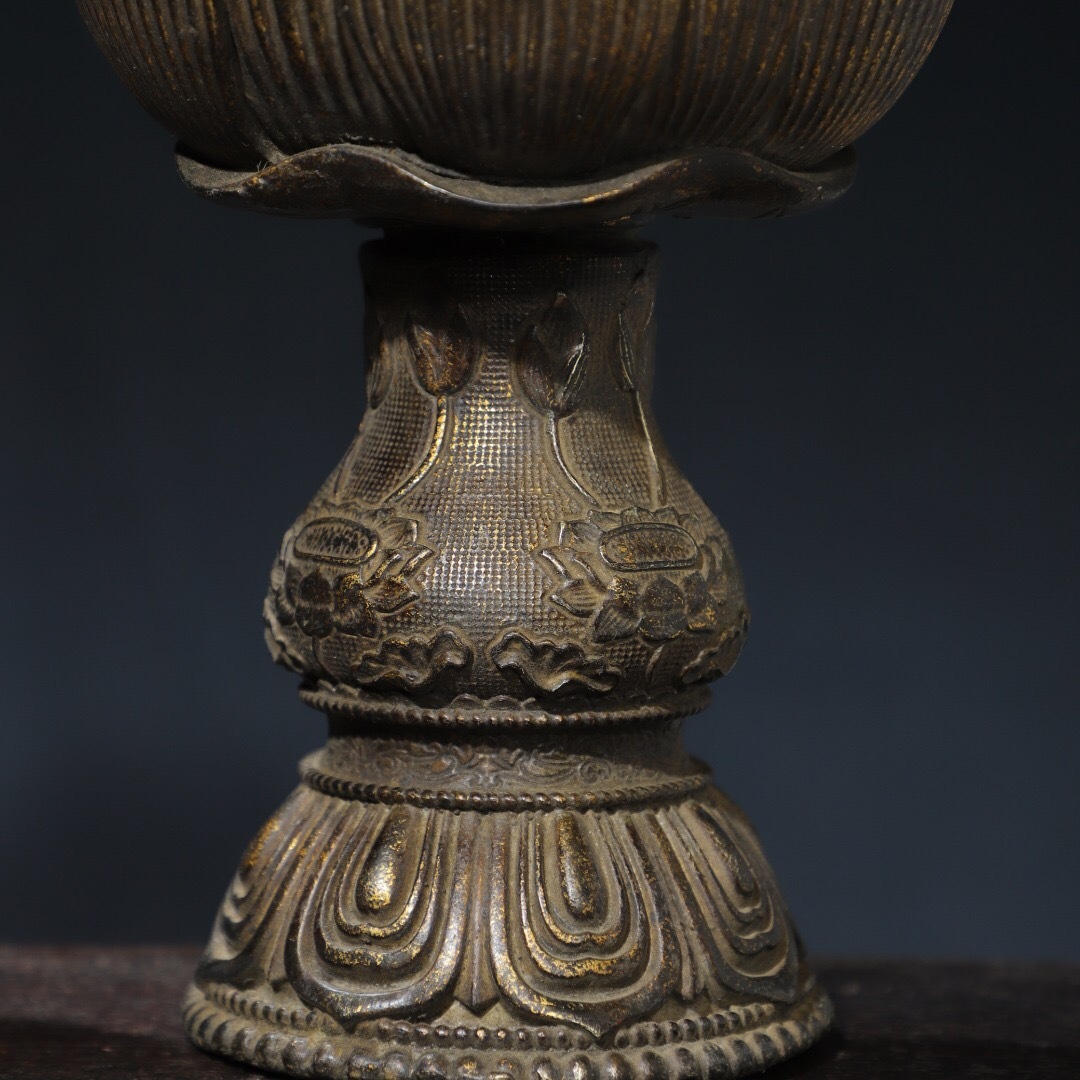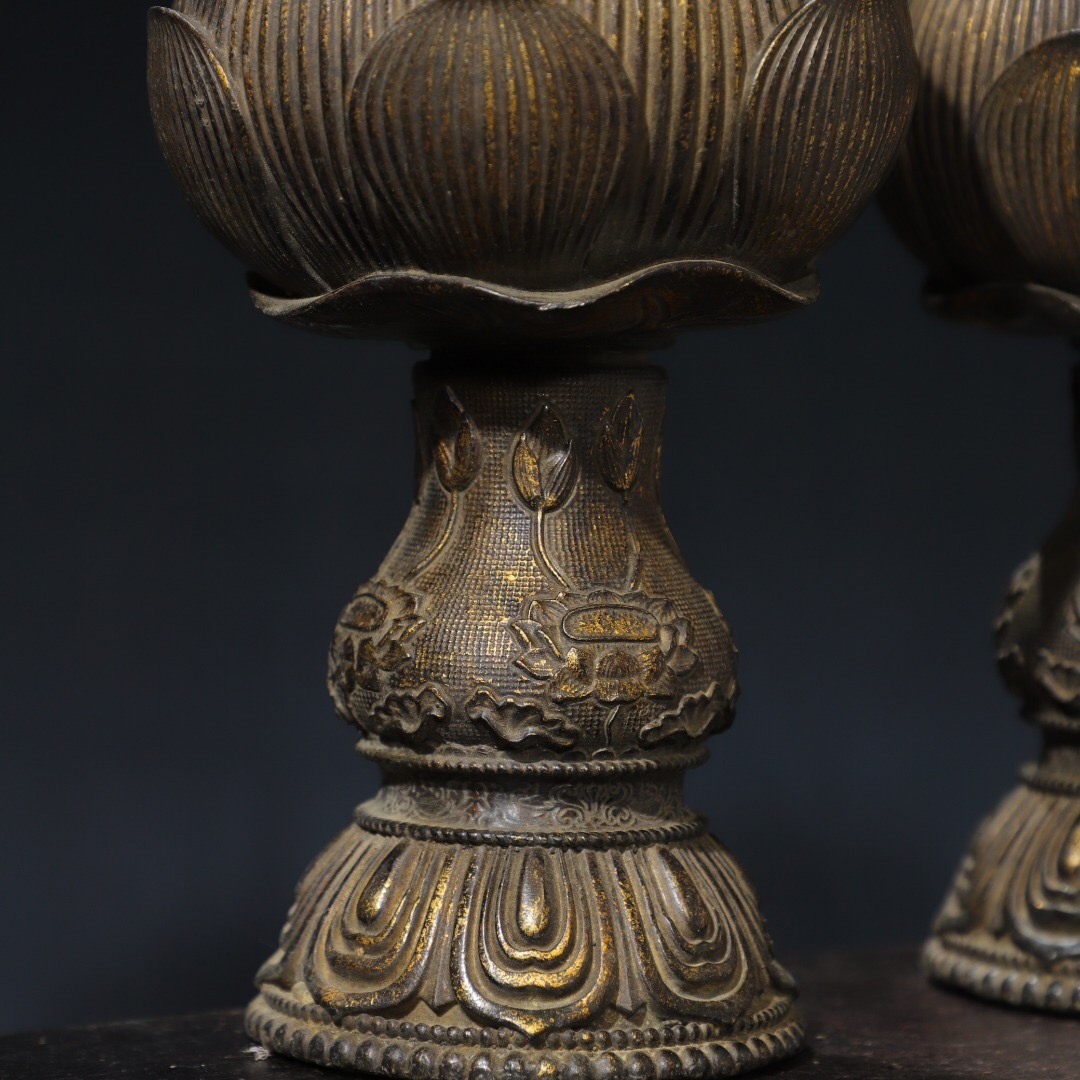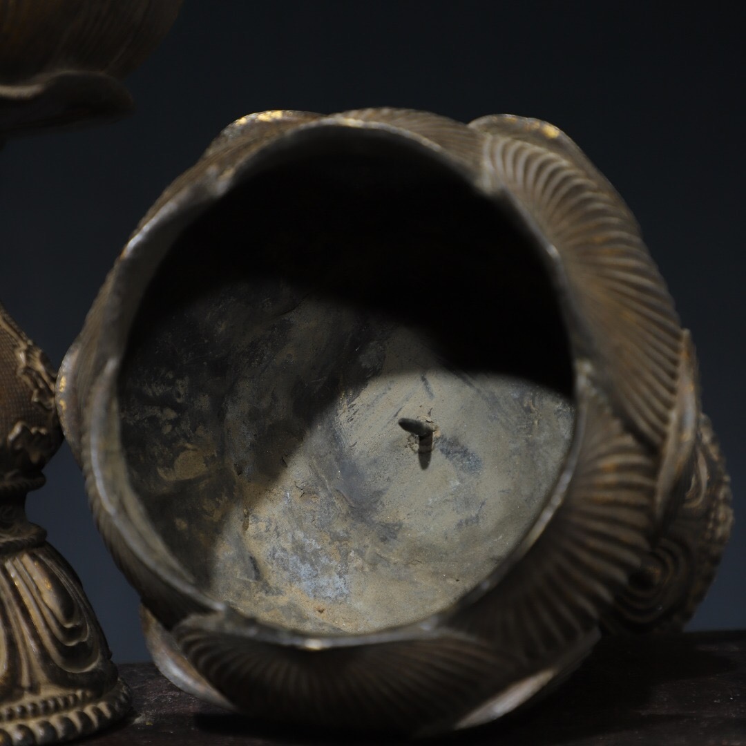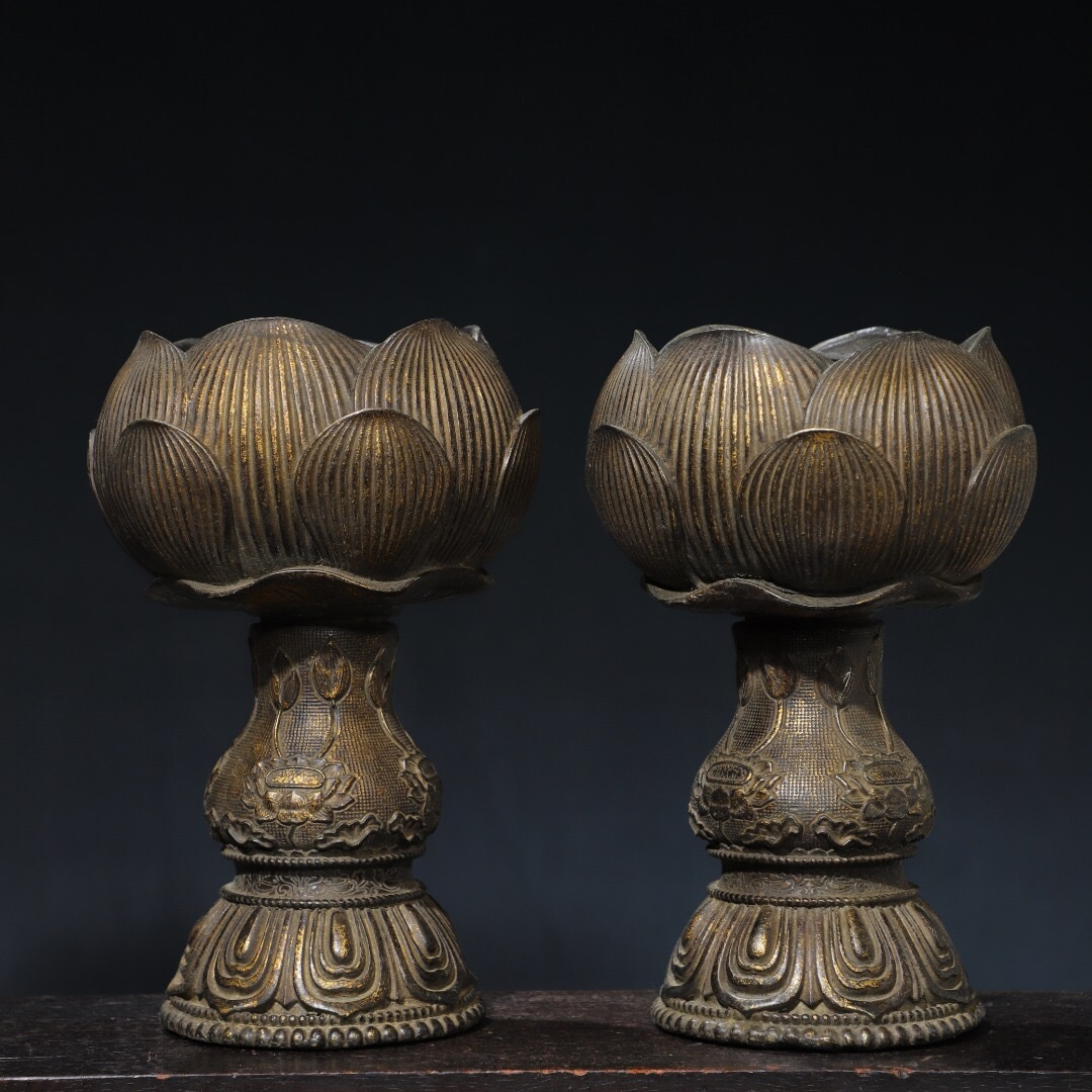 | 【蔵友館蔵品・銅製・拓金・蓮花燈台一對・置物・賞物】・古董品・中国古玩・時代物・希少珍品・中国時代美術 |