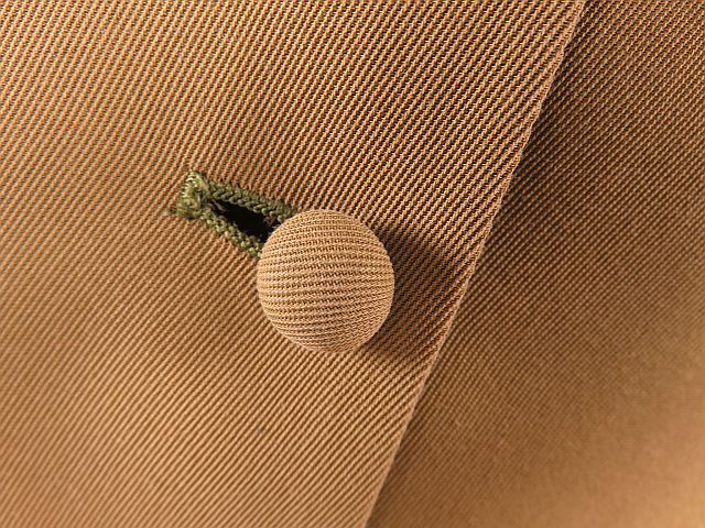 春秋に最適、両サイドフラップポケット、総裏地、肩や腕を動かしやすいラグラン袖(裄丈)になります。