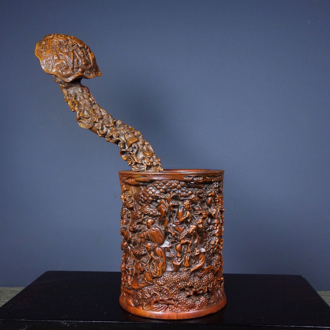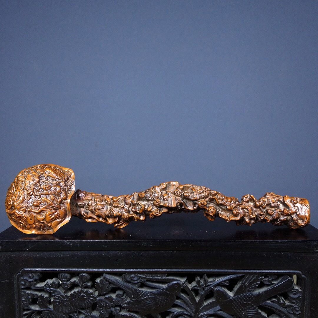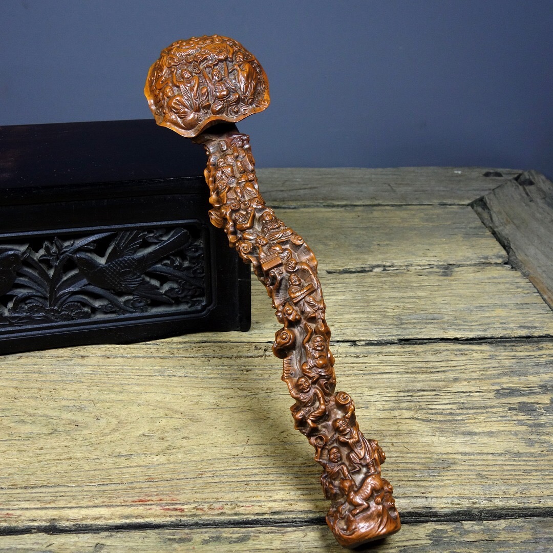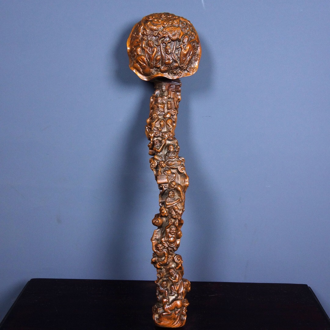 | 【蔵友館蔵品・花梨木製・細密彫・十八羅漢如意・置物・賞物】・古董品・中国古玩・時代物・希少珍品・中国時代美術 |