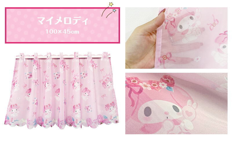 カフェカーテン マイメロディ サンリオ 幅 約100cm×丈約45cm-niil