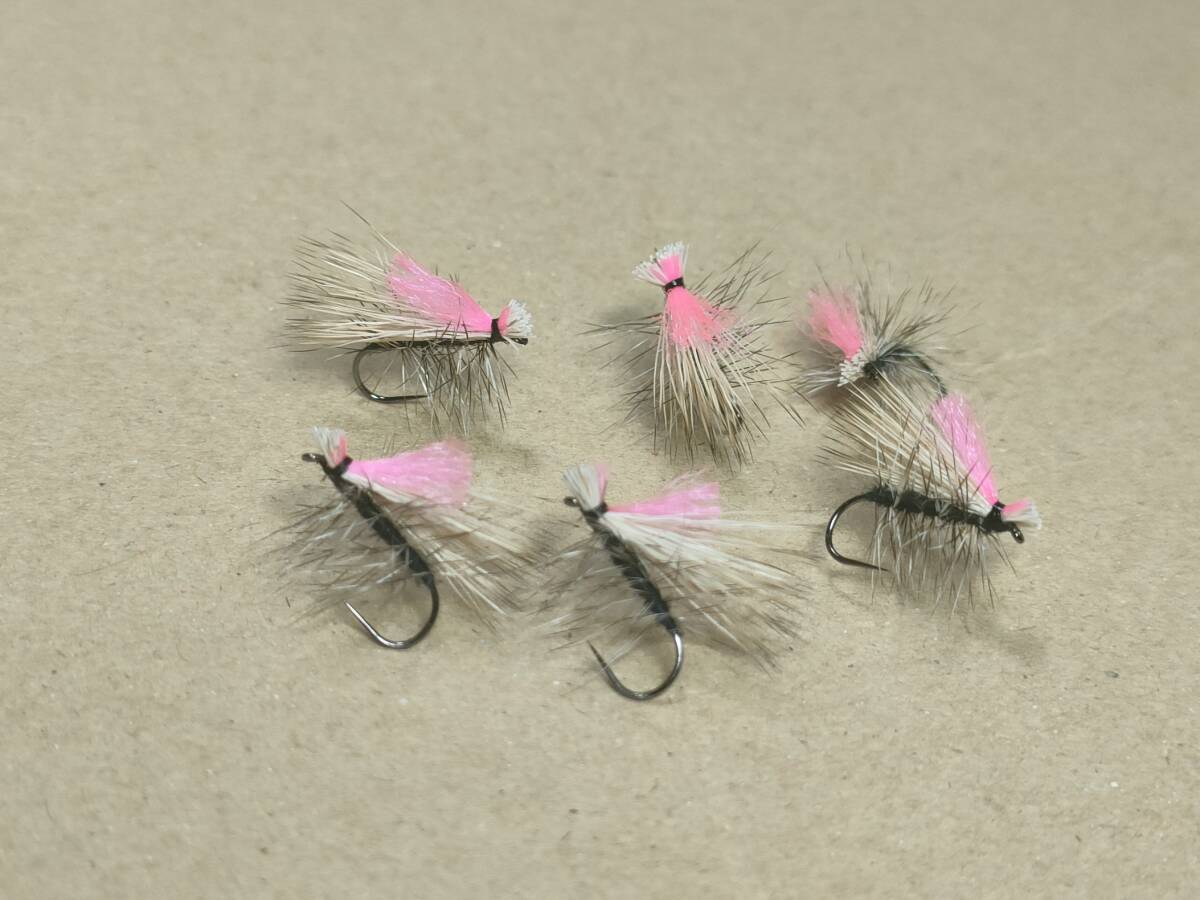 ■Rivers■エルクヘアカディス#12(ブラック、ブリーチ、ピンクマーカー付)計6本【種類】完成品フライ>ドライフライ>カディス系