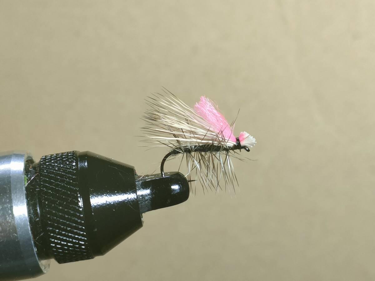 ・さらに視認性を上げるために、エルクヘアの上にピンクのマーカーを付けています。