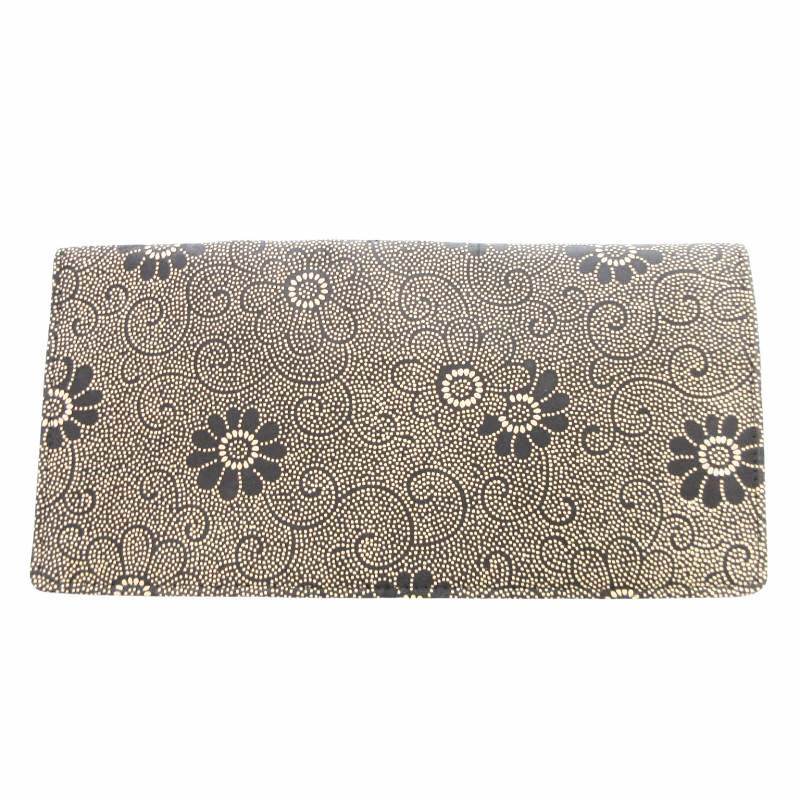 印傳屋 INDEN‐YA INDENYA 二つ折り財布 ウォレット 漆 花柄 鹿革 レザー ベージュ 黒 ブラック /HO ■GY18 レディース