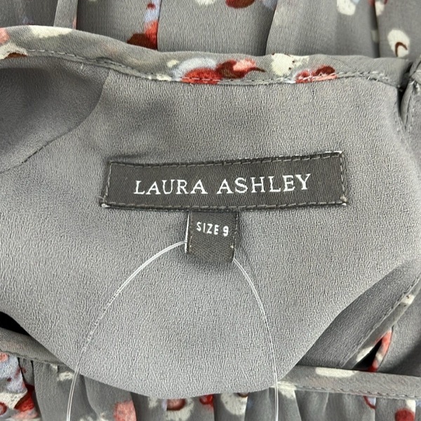 ローラアシュレイ LAURAASHLEY サイズ9 M - ライトグレー×ピンク×マルチ レディース クルーネック/半袖/ロング ワンピース