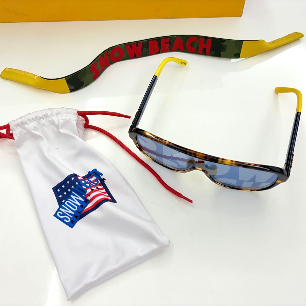 ・付属品 外箱 内箱 ギャランティーカード メタリック”SNOW BEACH”ロゴ入りのイタリア製シールドサングラス バッジ ストラップは特注のNATOタイプ 替えベルト