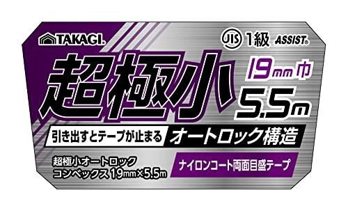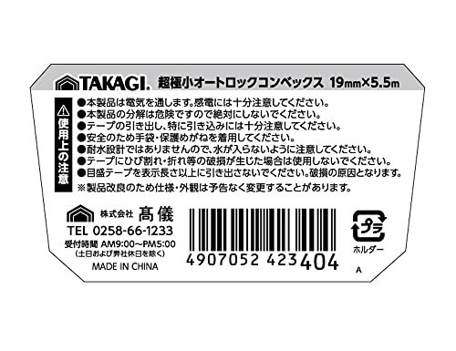 「高儀 TAKAGI 超極小 オートロック コンベックス 19mm×5.5m メジャー」▼4907052423404▼(商品説明)超極小・黒×白×シルバー 19mm×5.5m ・・Size:19mm×5.5mStyle:超極小・測定作業に・引き出すとテープが止まるオートロック構造・ナイロンコート両面目盛テープ、JIS1級・セット内容:コンベックス本体×1、ホルダー×1・テープ幅:19mm、テープ長さ:5.5m説明 ●測定作業に●引き出すとテープが止まるオートロック構造ナイロンコートテープ両面目盛JIS1級