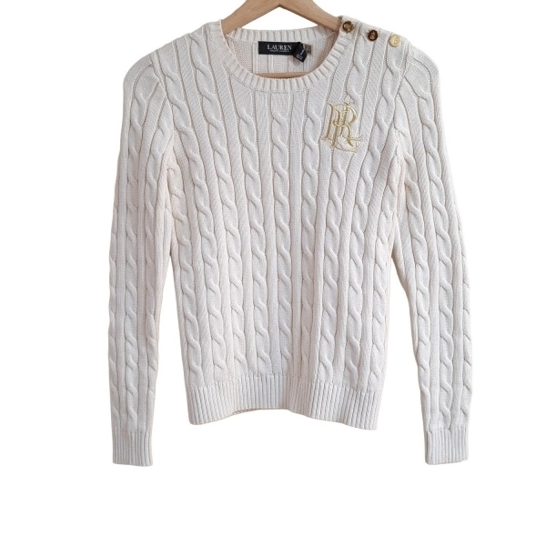 ラルフローレン RalphLauren 長袖セーター/ニット サイズXS - アイボリー×ゴールド レディース クルーネック 新品同様 トップス