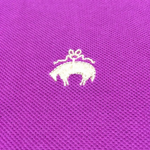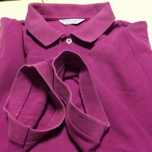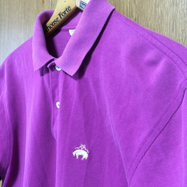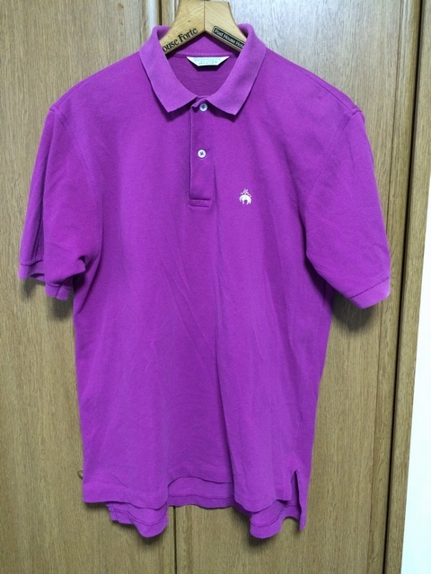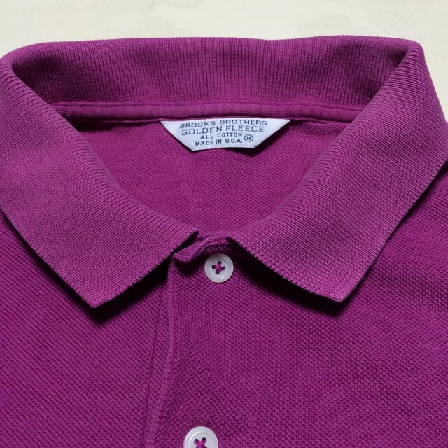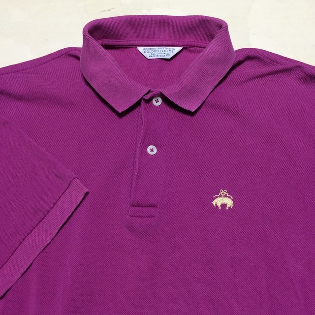 商品説明・状態 | 1.アメリカ製 Brooks Brothers の半袖ポロシャツで、ラズベリー色(濃い紫みの赤色)無地 鹿の子生地で出来ています。 2.ゴールデンリーフは金色でししゅうされています。 3,ロングテールサイドスリットのデザインで、スリット付け根両側に、ほつれがあります。 4..サイズの合う方いかがですか。 | |