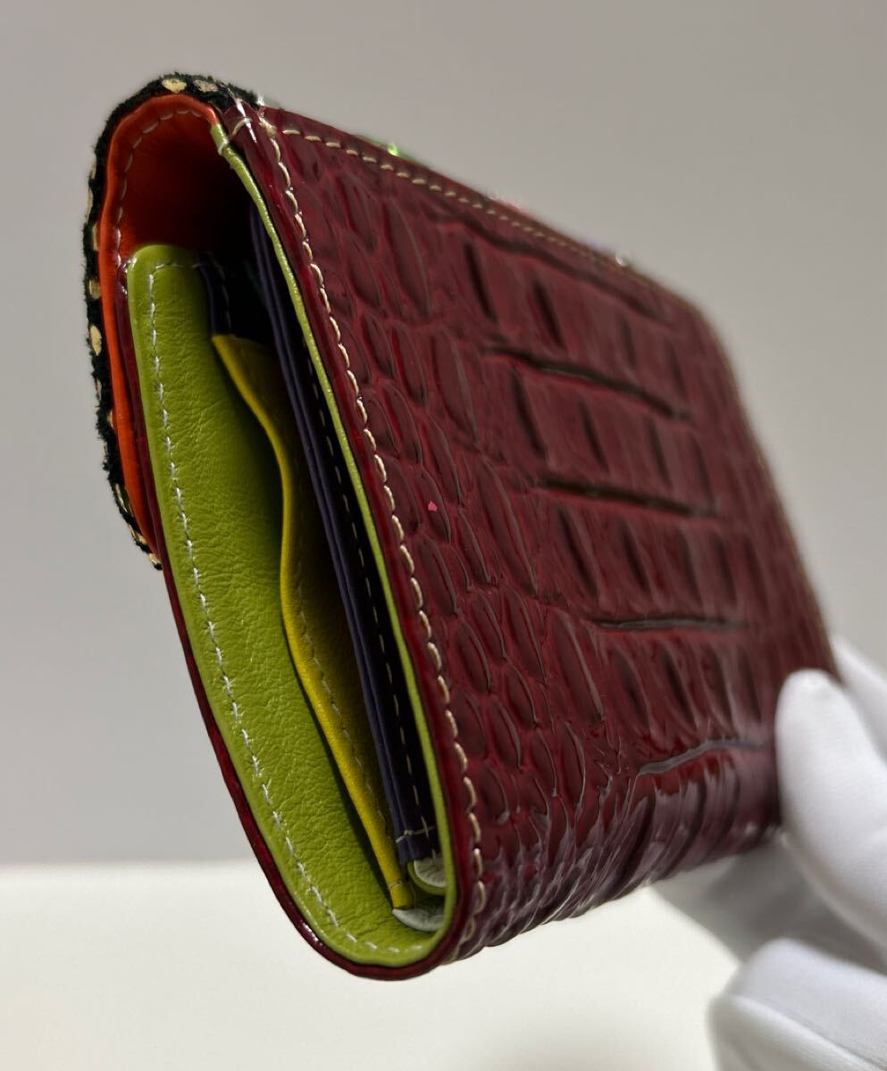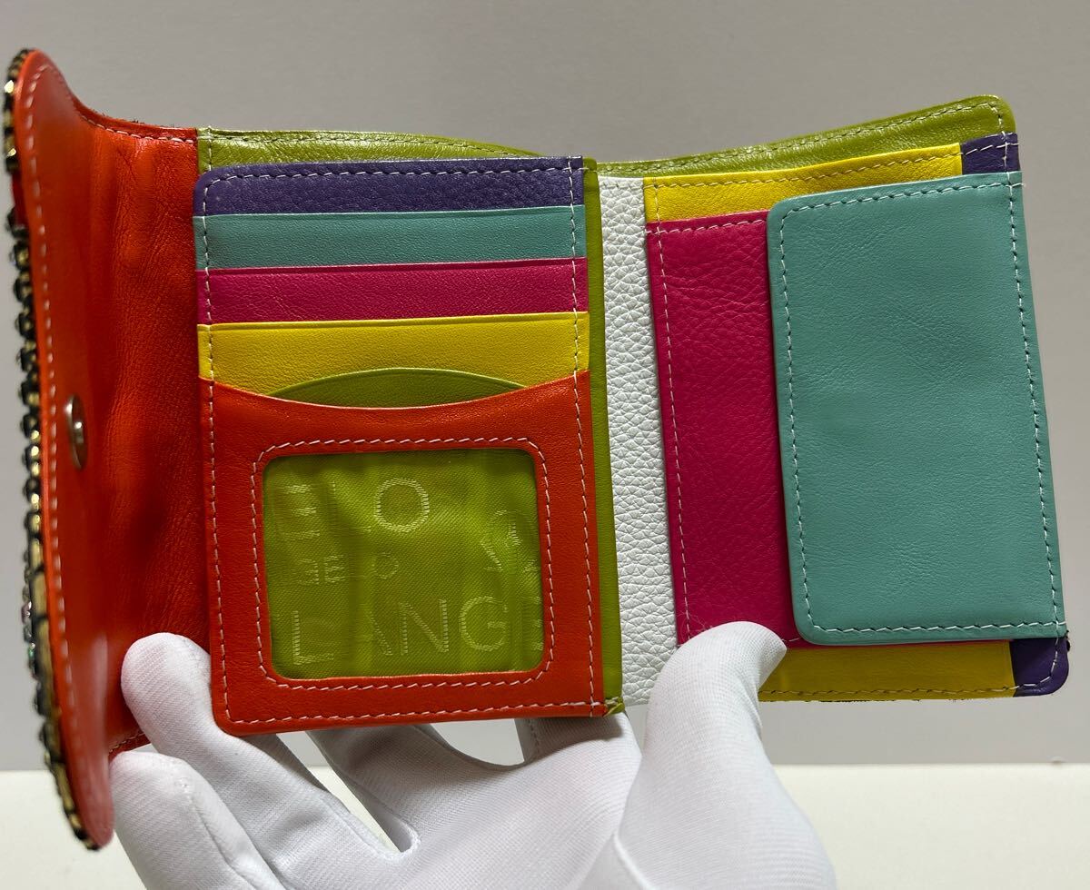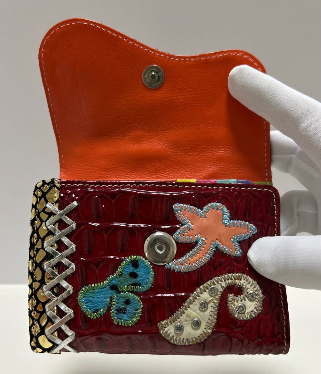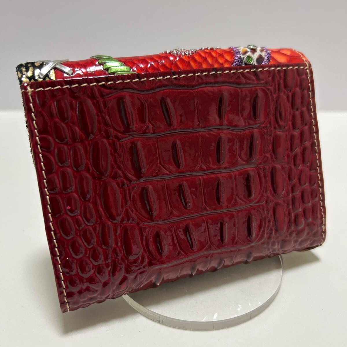 ☆良品-箱付き☆ ★MICHELANGELO ミケランジェロ 三つ折り財布 レッド系★ ビジュー 型押し イタリアンレザー 【送料無料】0606-L1