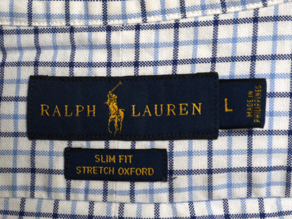 | 商品名 | ラルフローレン チェック 長袖 ボタンダウン シャツ メンズ L 古着 ポロ 長袖シャツ オックスフォード ストレッチ コットン スリムフィット |