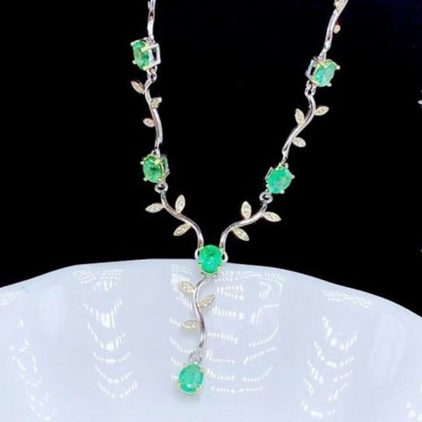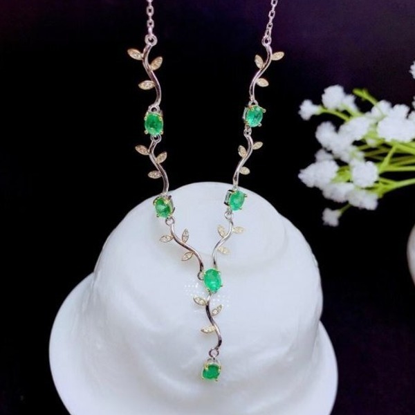 《証明書付き》天然エメラルドペンダントネックレス、925シルバー