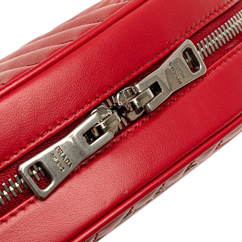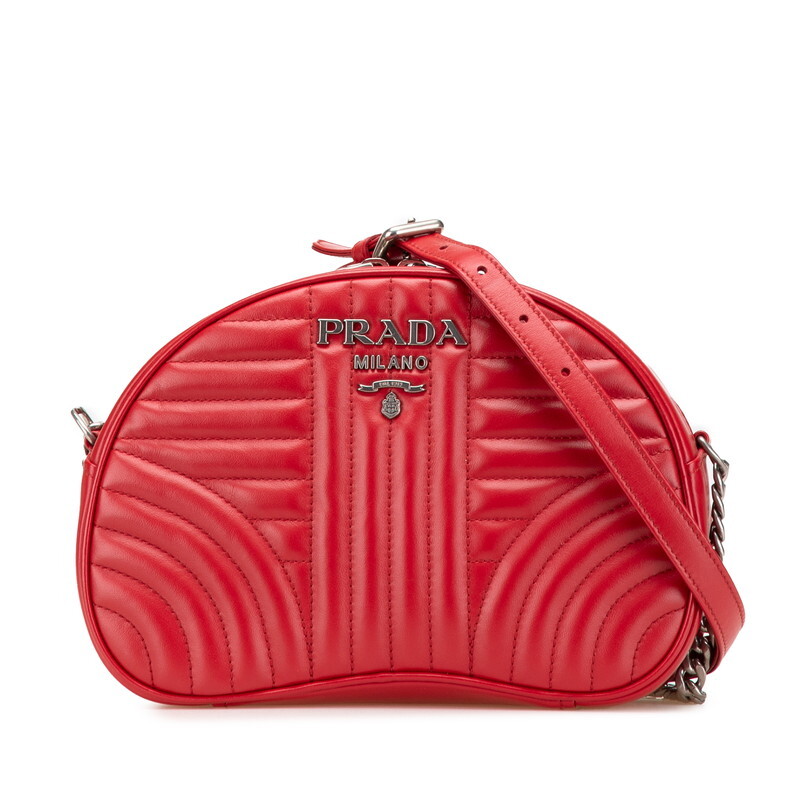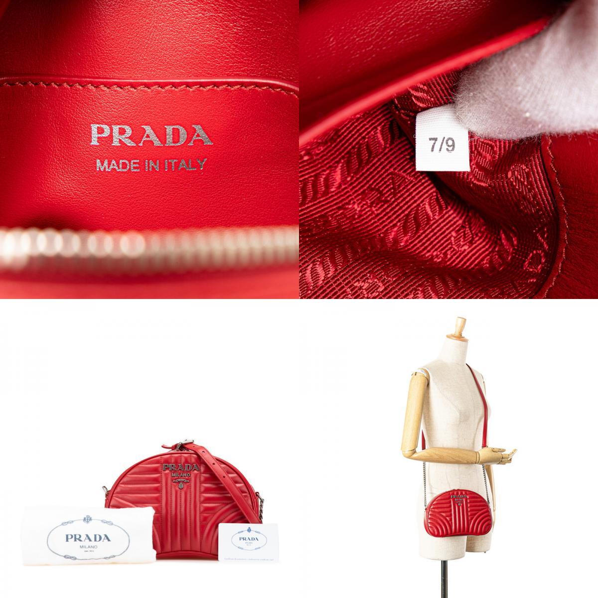 プラダ ダイアグラム ショルダーバッグ 1BH130 レッド レザー レディース PRADA 【中古】