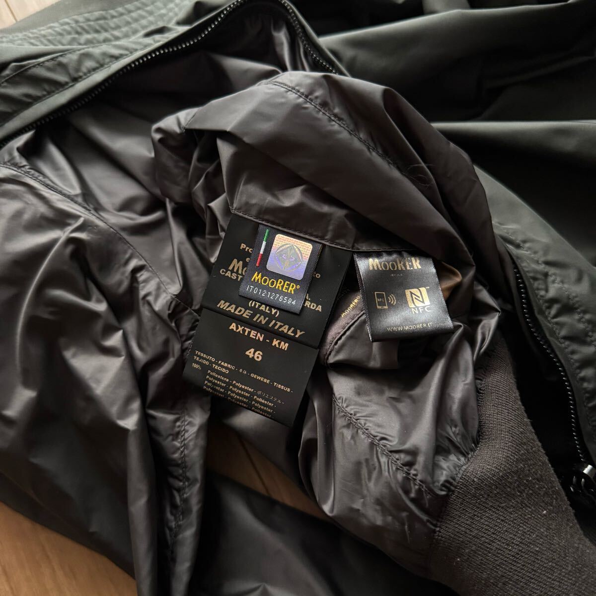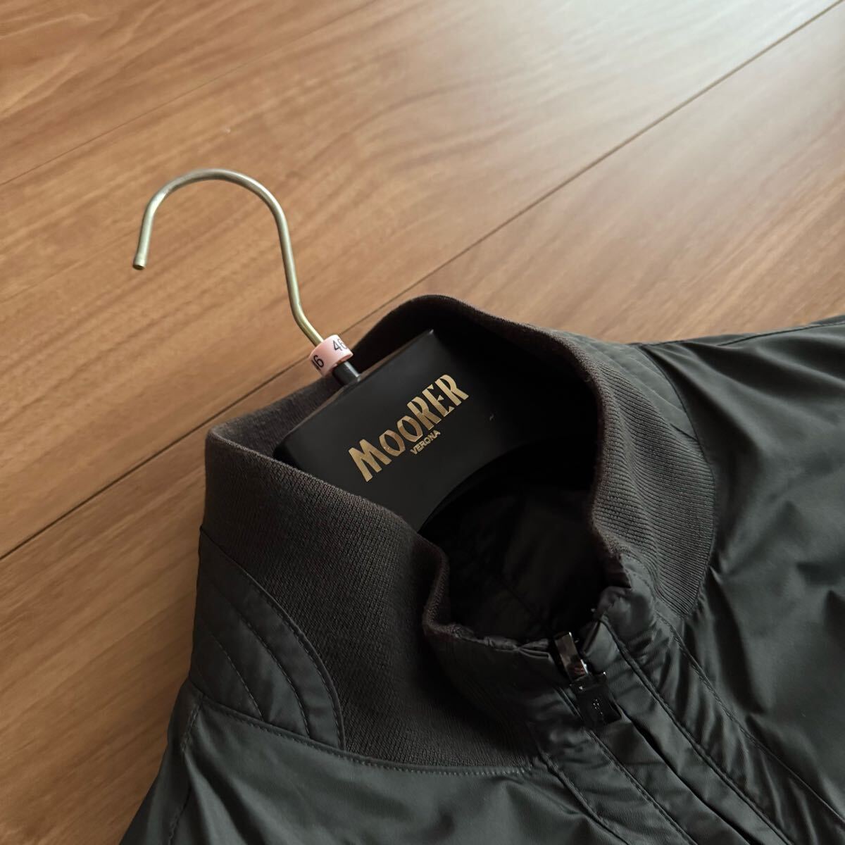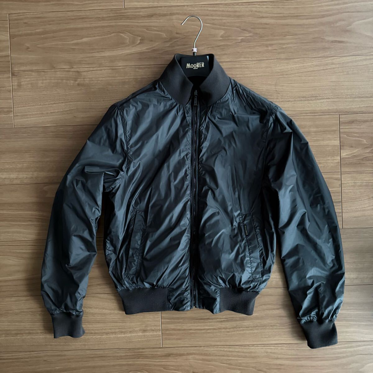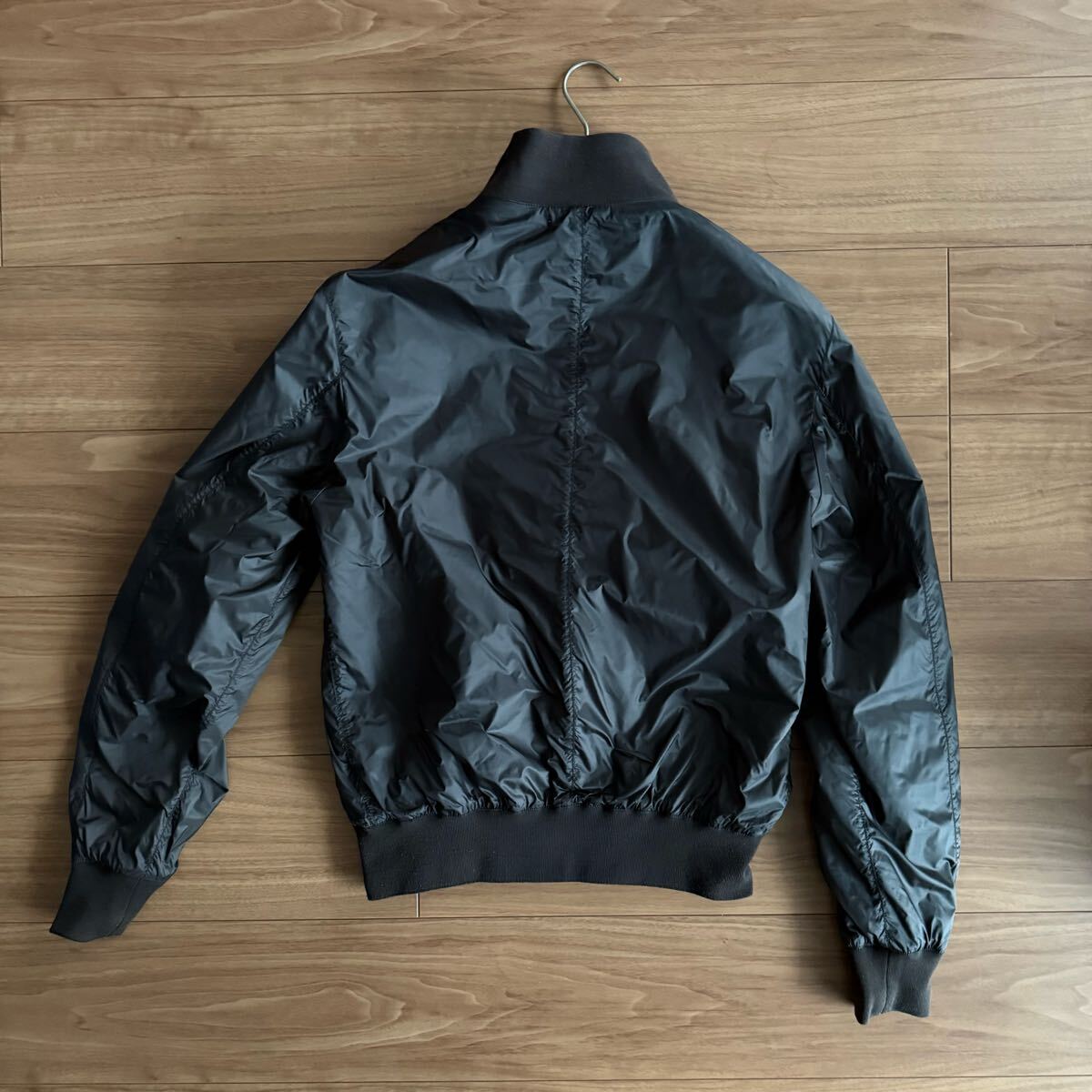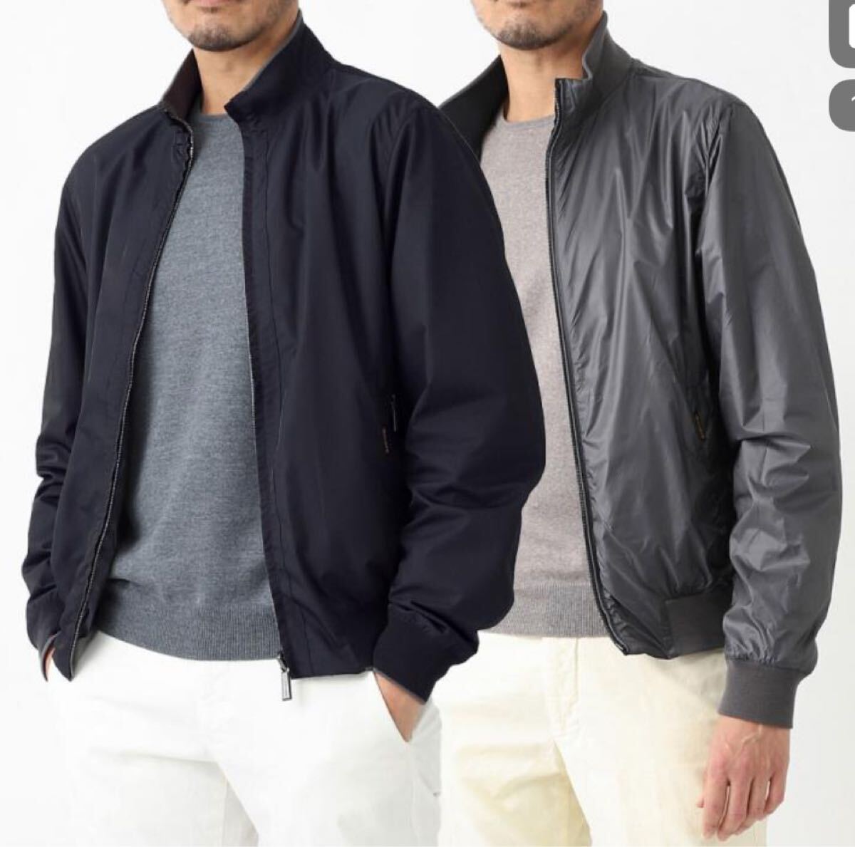 片面に「Sharp Memory Pes」ファブリック、もう片面に「Pirax」ファブリックを使用したリバーシブルのボンバージャケット。視点によって色が変化するタフタ織りのギャバジン生地は、形状記憶性能と耐水性を備えており、重ね染めがほどこされています。