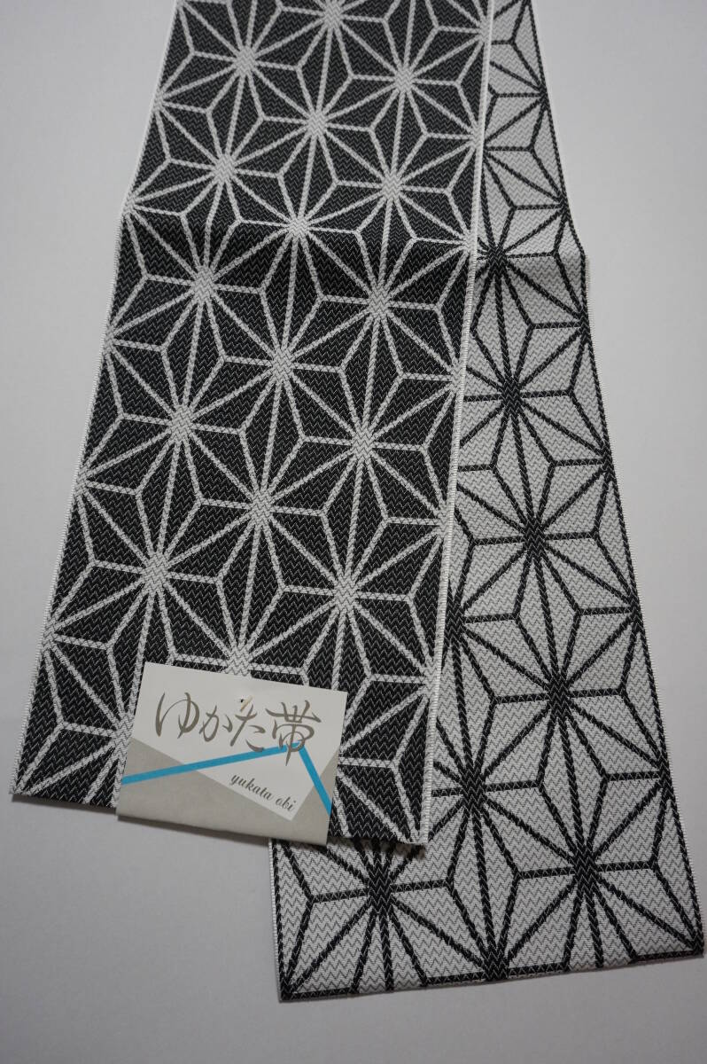 ネコポス送料込)新品即決!特価)柄浴衣帯no,06 黒/白系地の麻の葉柄 運動会、学芸会などにも