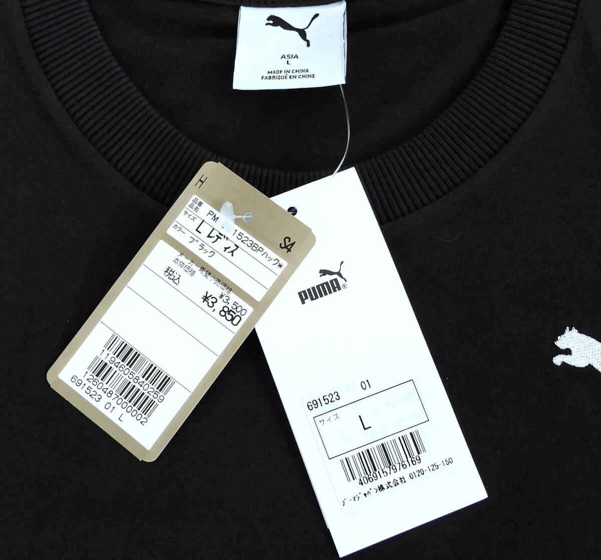 PUMA プーマ 半袖Tシャツ コットン バックプリントTシャツ レディース Lサイズ ブラック【新品未使用】