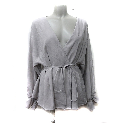 ローリーズファーム LOWRYS FARM シャツ ブラウス カシュクール 長袖 ベルスリーブ F ベージュ /YI レディース
