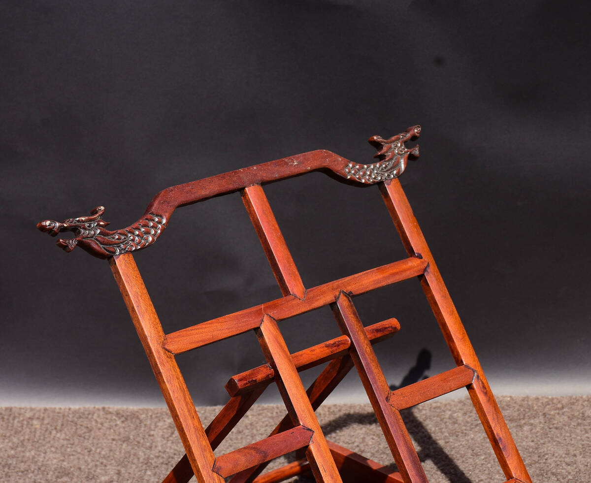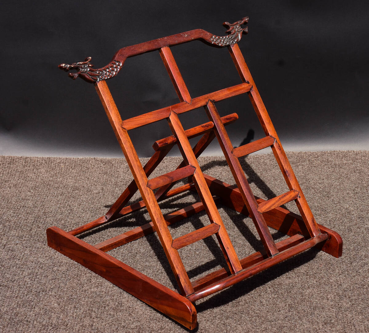 唐物 清 大紅酸枝木 彫刻 龍首 看書架 木製 古美術品 時代物 中国古玩 骨董品 D66