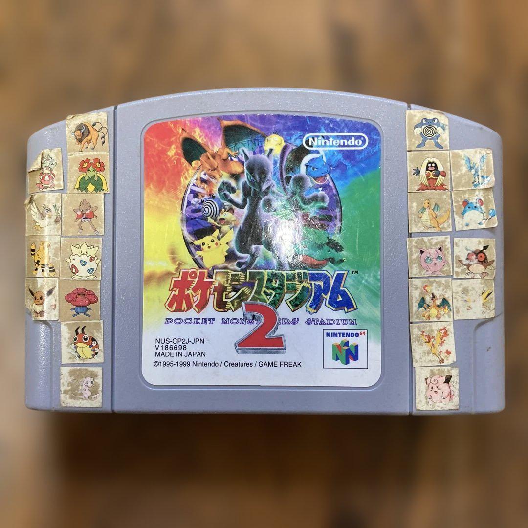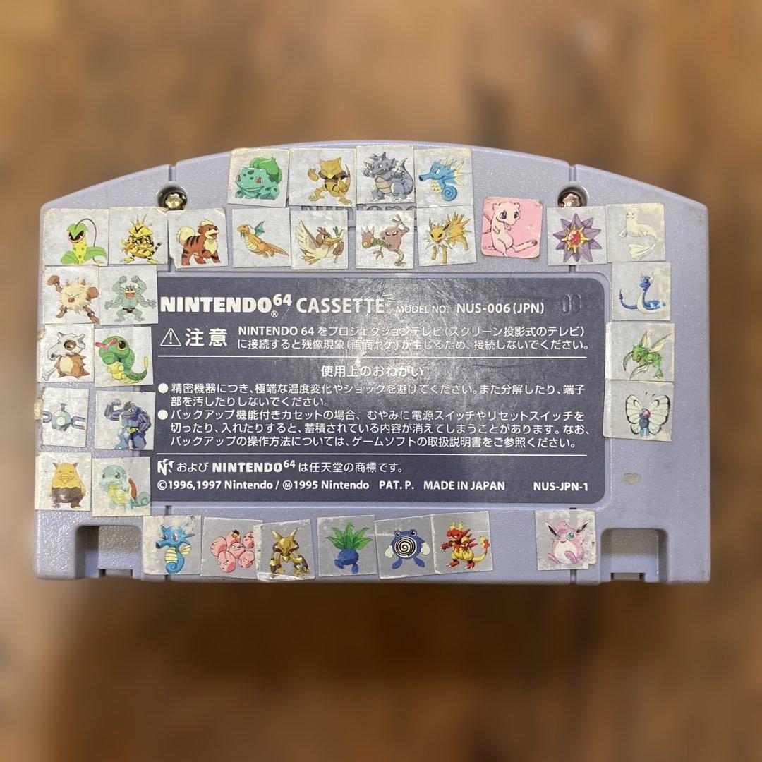 ポケモンキャラクターが描かれたNINTENDO64用のゲームカセット。