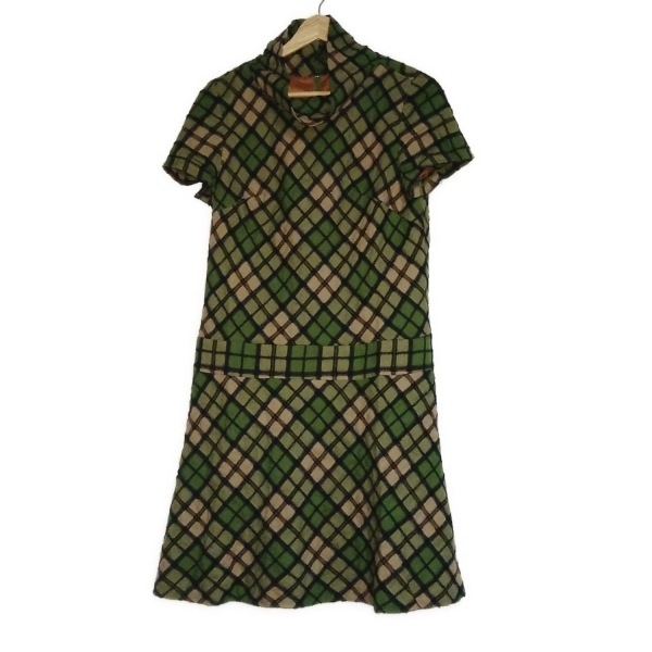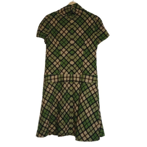 ホコモモラ JOCOMOMOLA サイズ42 L - グリーン×ベージュ×マルチ レディース 半袖/ひざ丈 ワンピース