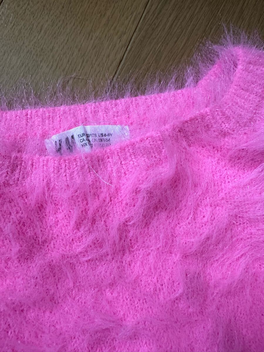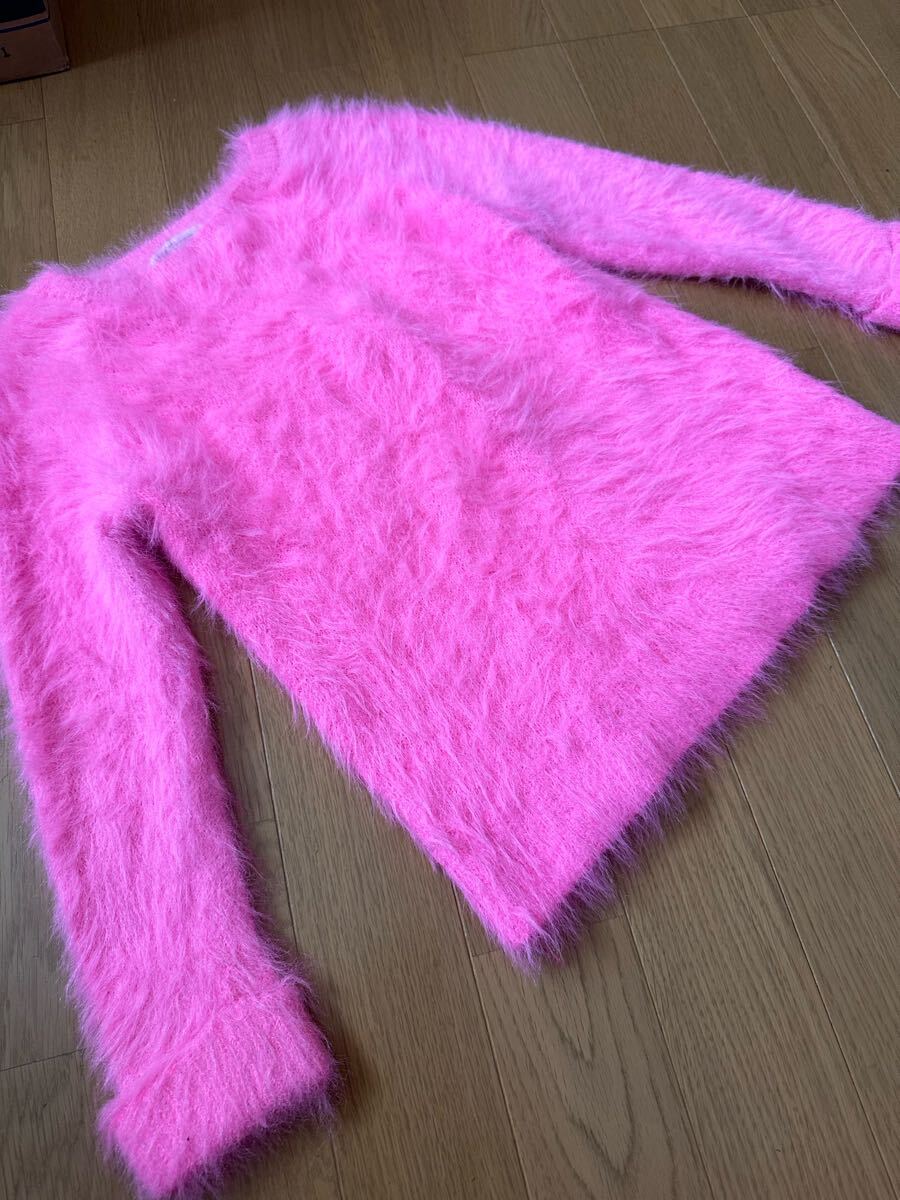 鮮やかなピンク色のシャギーニットです。