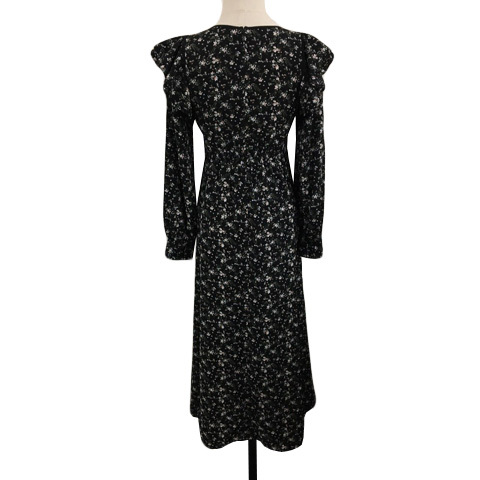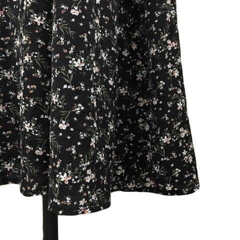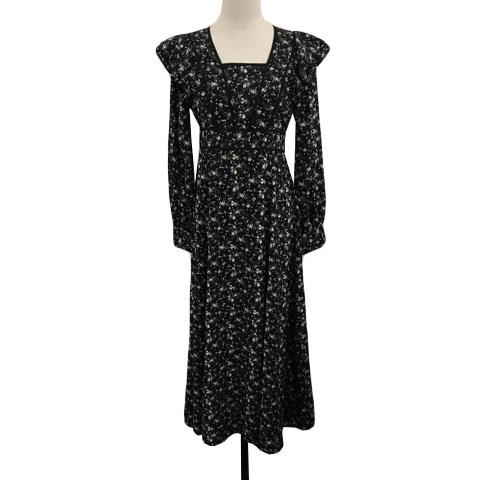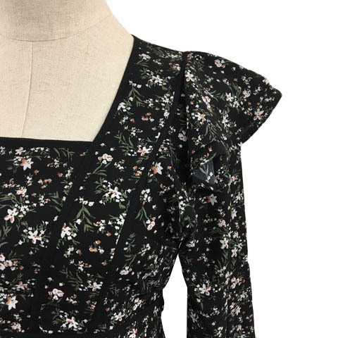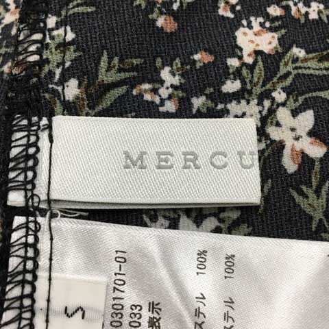 マーキュリーデュオ MERCURYDUO ワンピース フレア ロング パイピング ラッフル 花柄 長袖 S 黒 白 ブラック ホワイト レディース