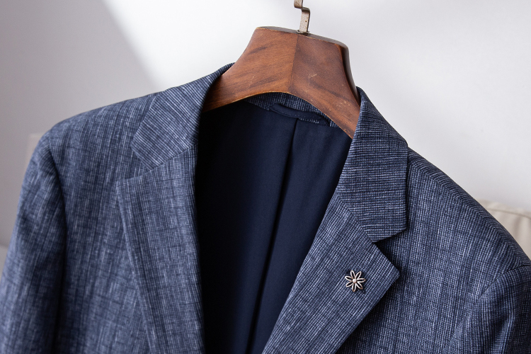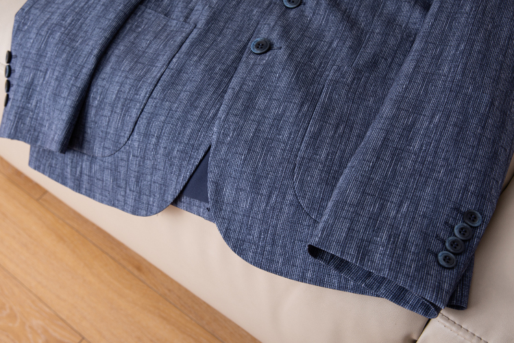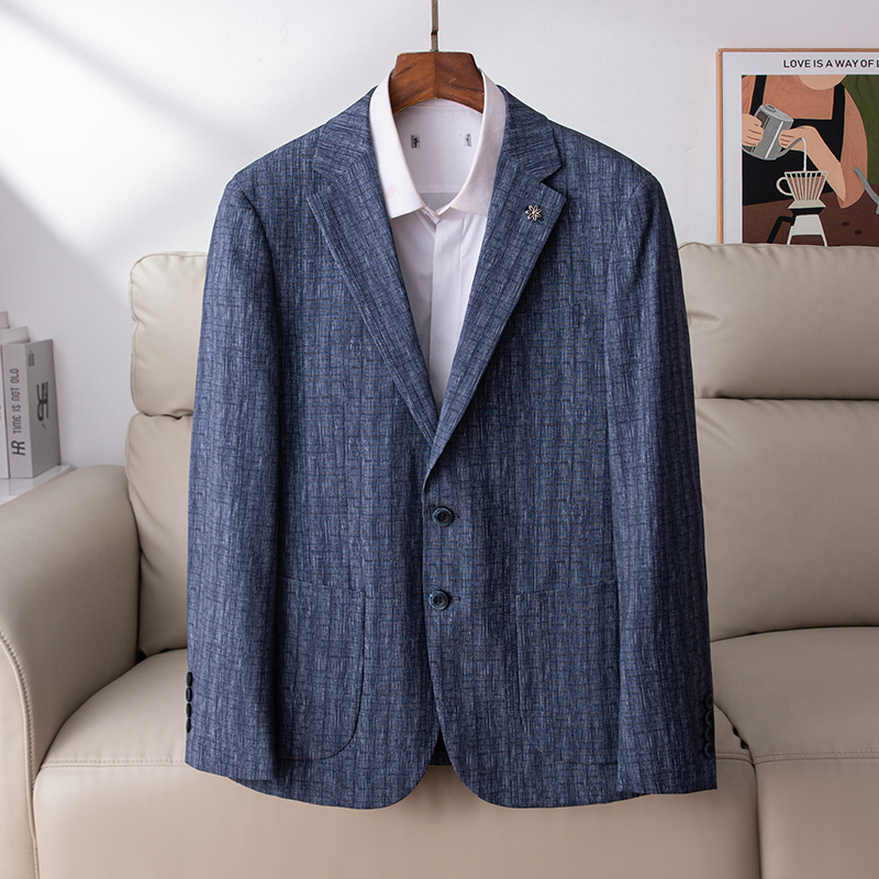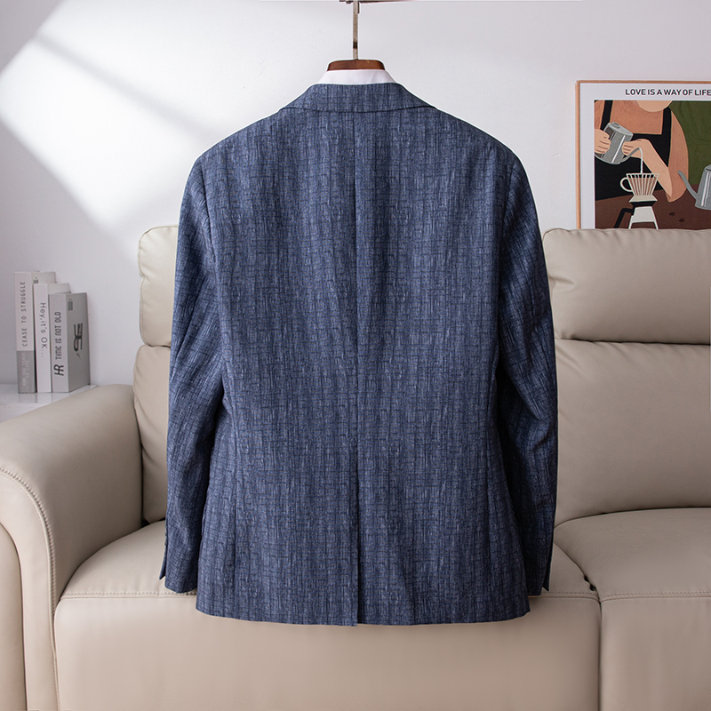 新入荷人気2XLテンセル混 テーラードジャケット メンズ ストライプ スーツ ジャケット 高品質 春夏 薄 カジュアル ブレザー/ブルーグレー