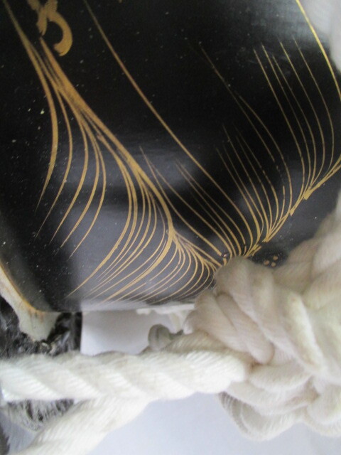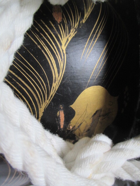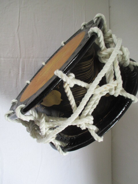やや年代の古い附締太鼓、銅には千鳥の蒔絵模様入り、