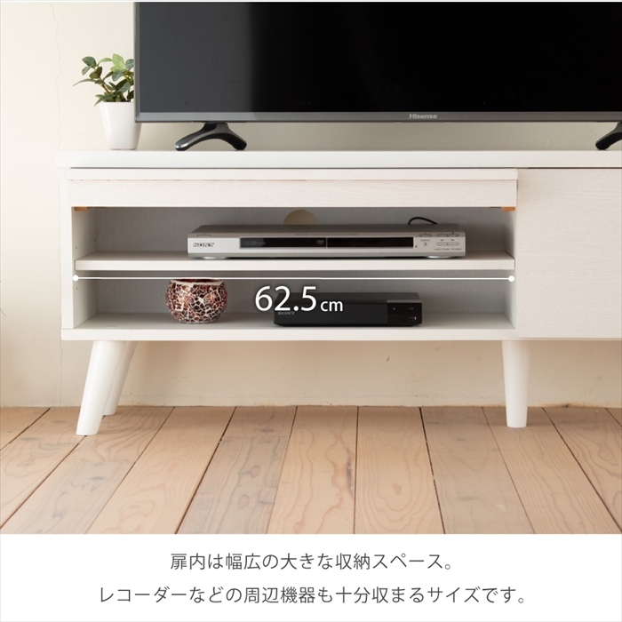 | 幅105cmの40型テレビ対応。 フラップ扉で隠して収納。 見た目スッキリでお部屋もスッキリ。 どんなお部屋にも馴染むシンプルなデザイン。 フラップ扉で収納部分をおしゃれに隠せる優れもの。 スマートな見た目でお部屋もスッキリ。 脚付きだからお掃除も楽々。 |