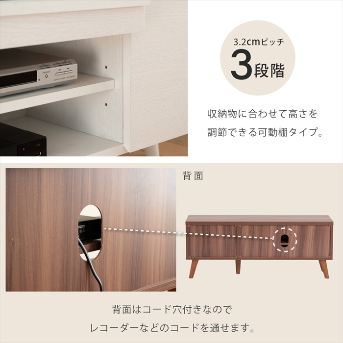 | ・背面化粧有り ・可動棚:1枚 ・脚は天然木を使用しているため、商品によって色味や木目などの風合いが異なります。 |