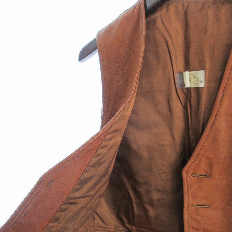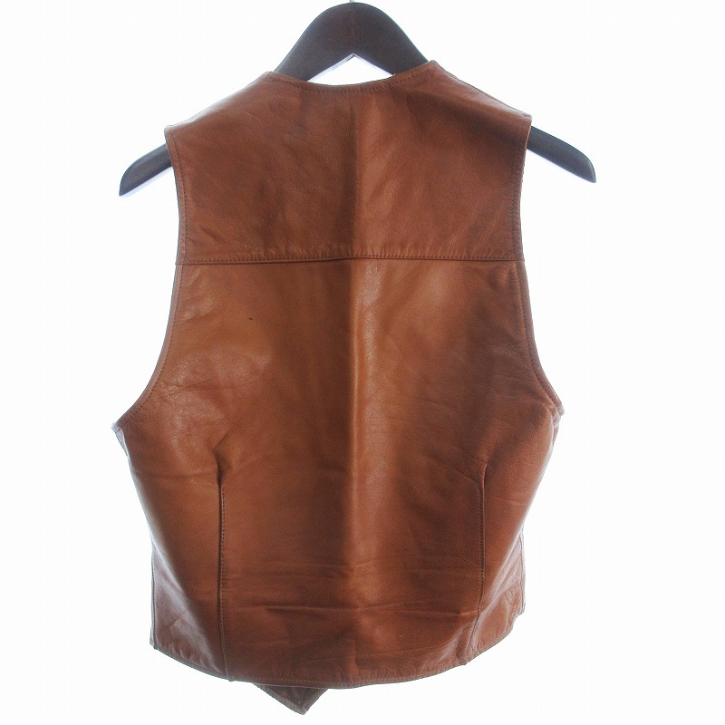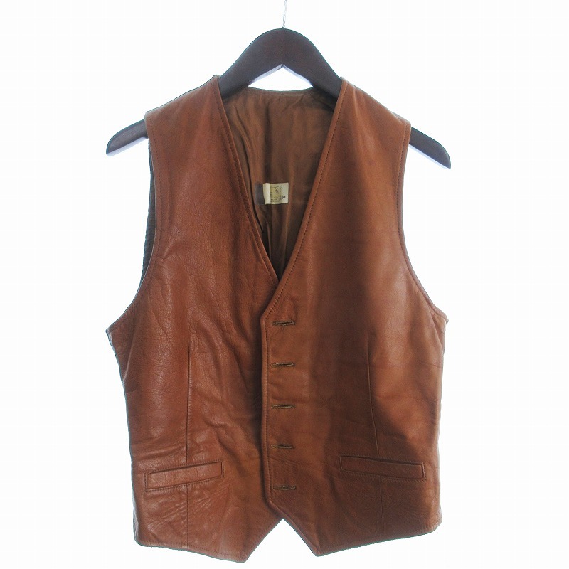triple LLL ヴィンテージ レザーベスト 無地 ダブルポケット 茶 ブラウン 38 メンズ