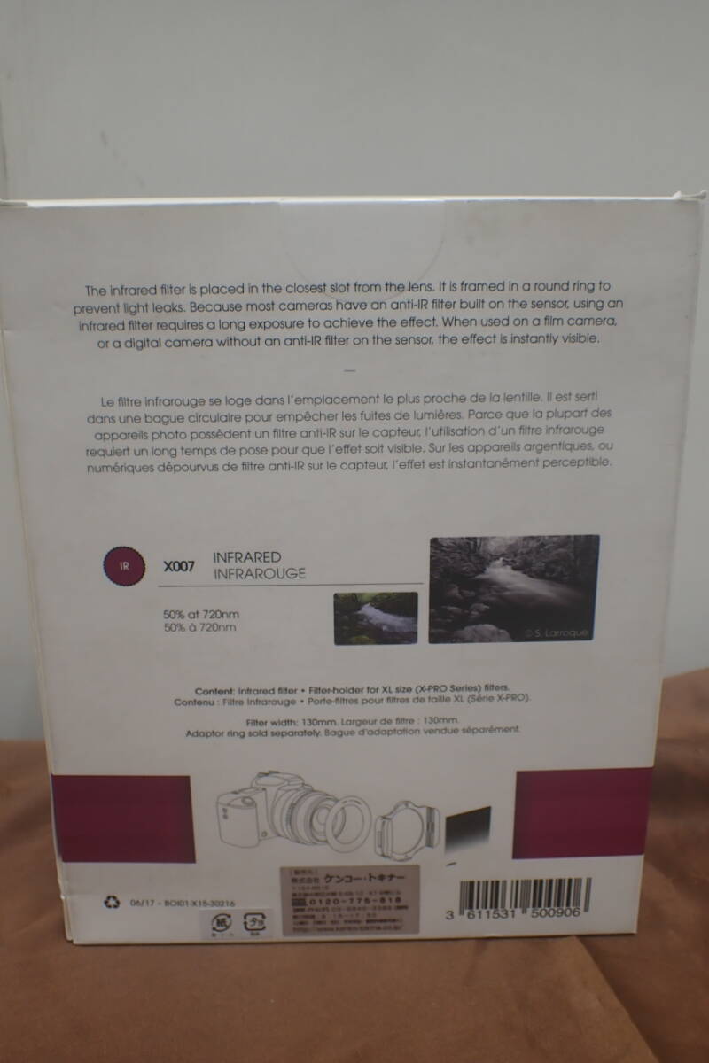 デジタル一眼レフのメーカーや機種により、赤外の感光特性が異なるため、露出の調整など、実際に撮りながらコツをつかむ必要があります。XLサイズは130mm幅のフィルターシステムです。
