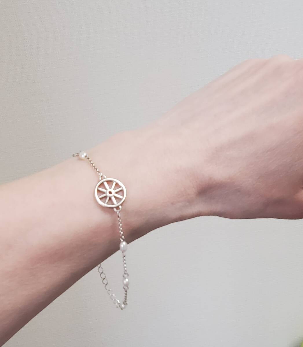 SILVER 925 シルバー925刻印 真珠 パール ブレスレット レディース アクセサリー 2,7g 17-20㎝ 美品