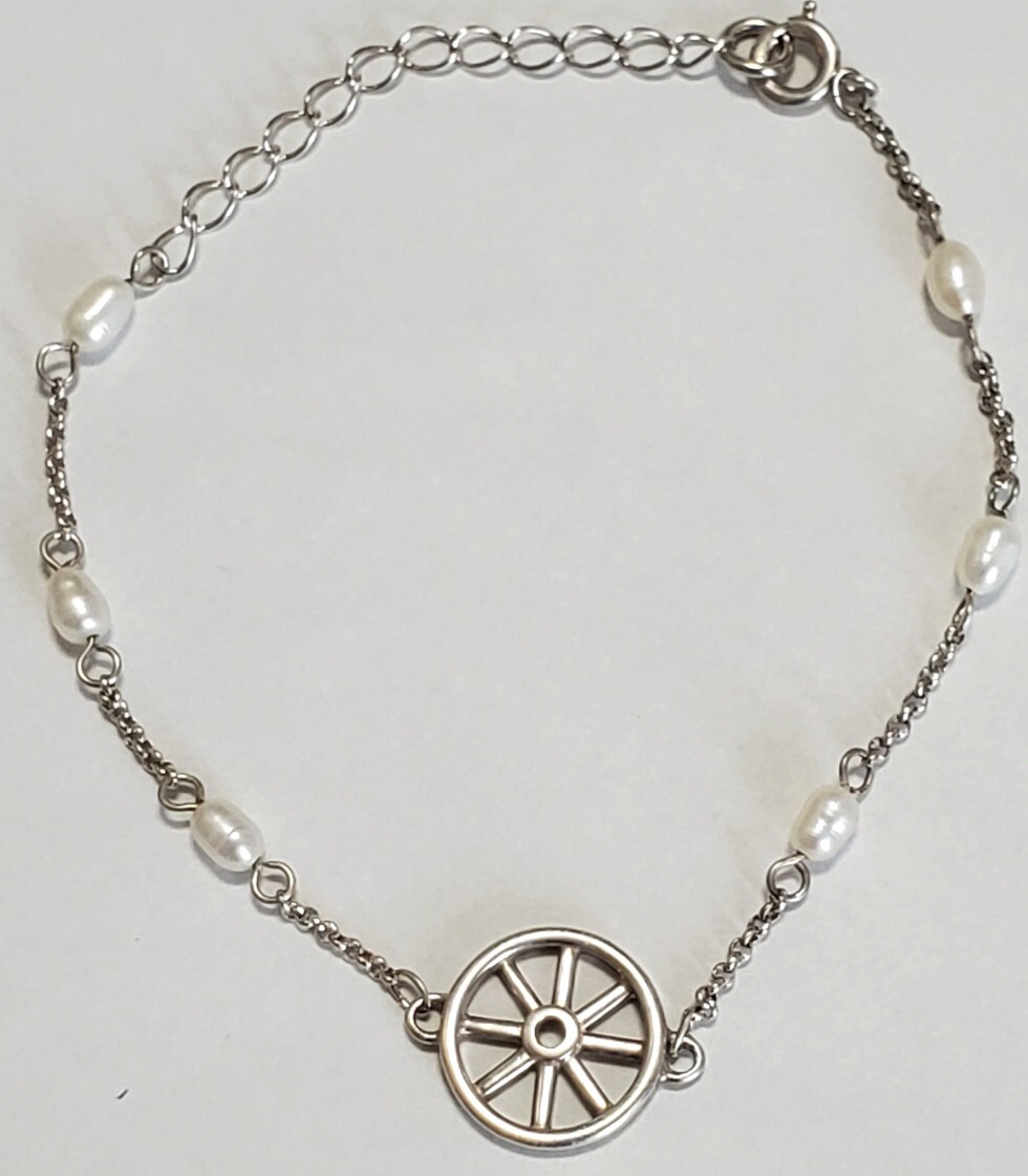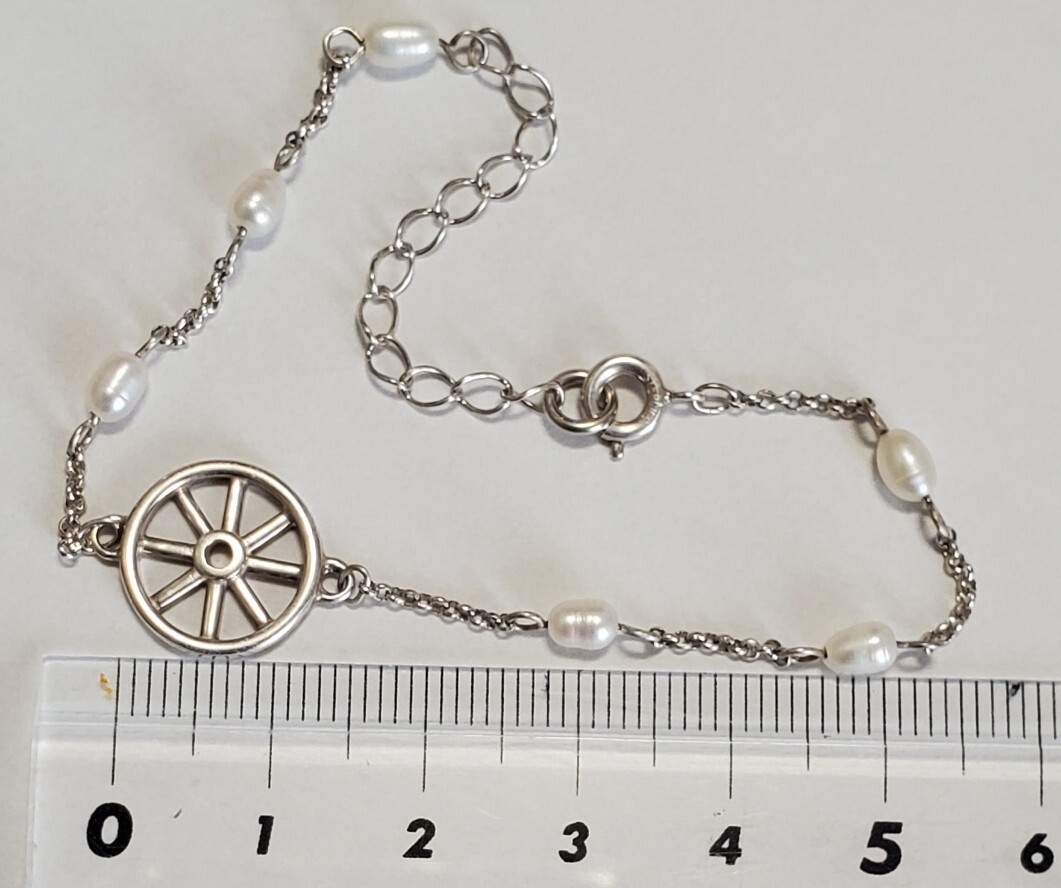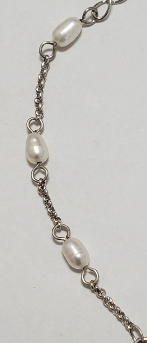 SILVER 925 シルバー925刻印 真珠 パール ブレスレット レディース アクセサリー 2,7g 17-20㎝ 美品