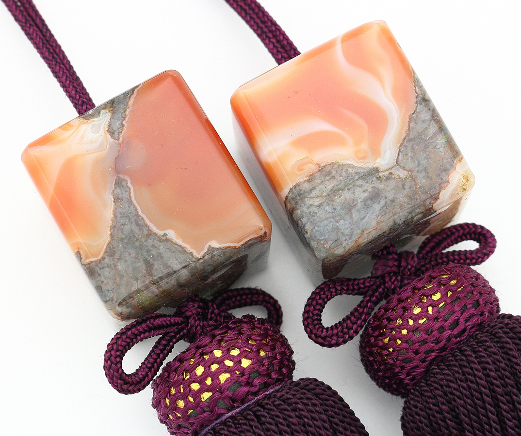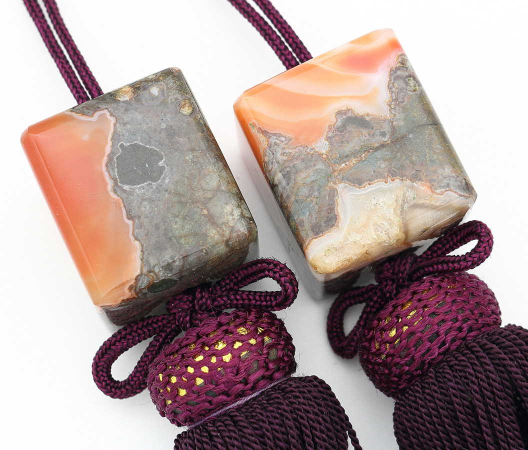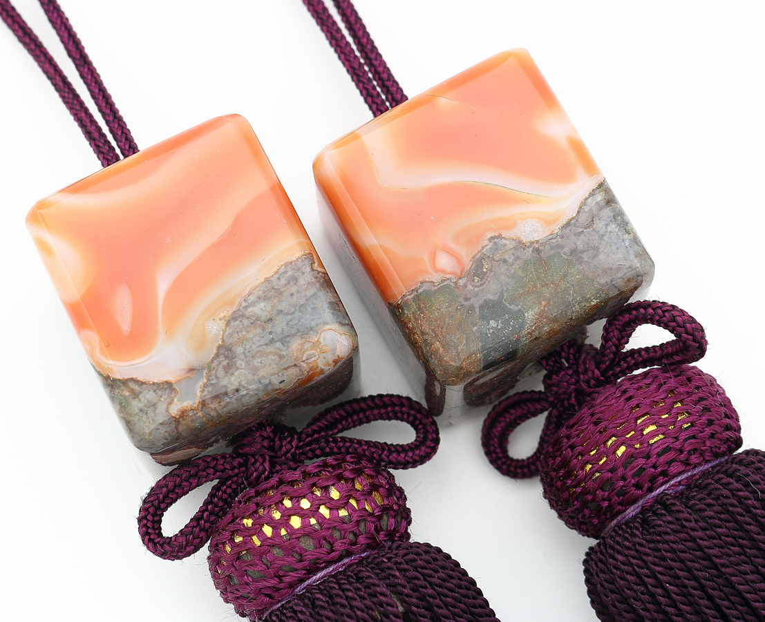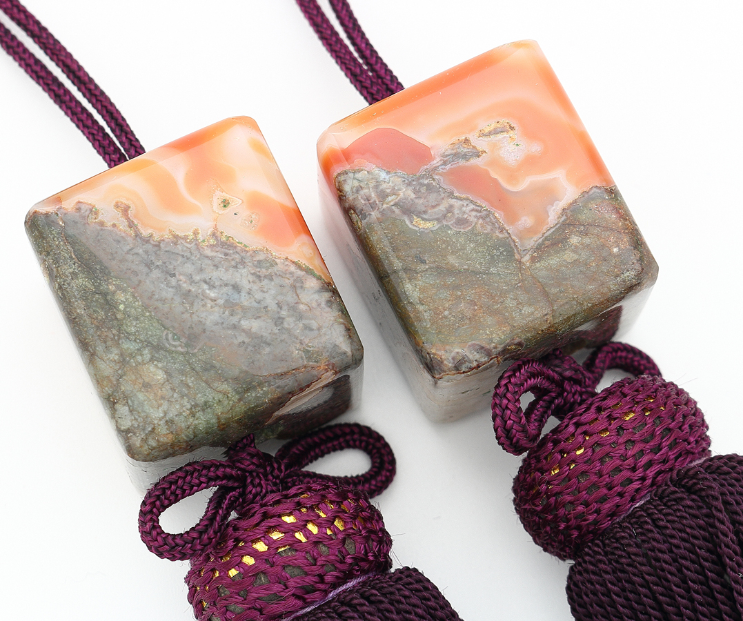 寸法・・・全長 約25cm 瑪瑙2.7×2.8×3.1cm 状態・・・問題なし 詳細・・・本瑪瑙 あまり見かけないタイプのモダンな風鎮です | |