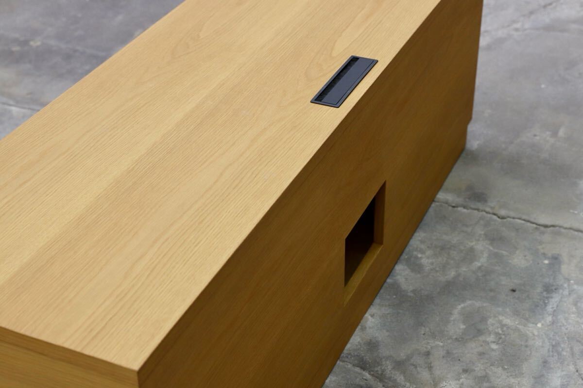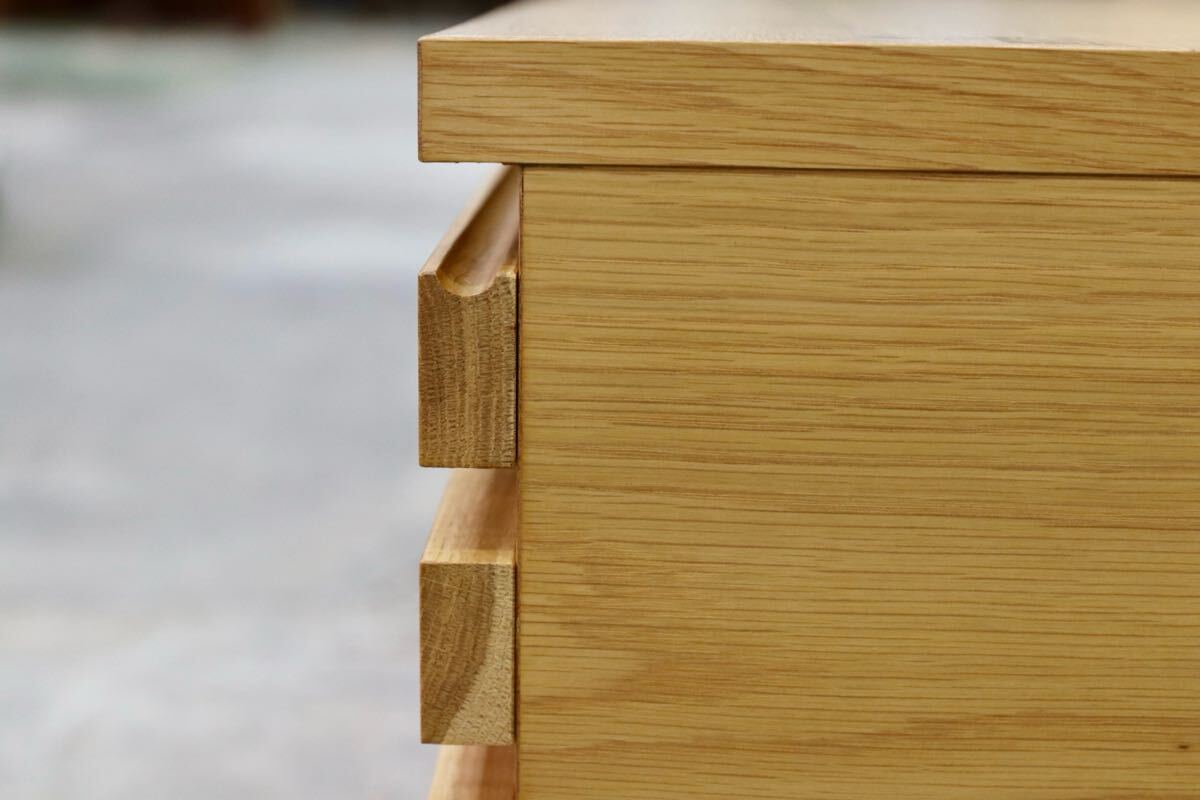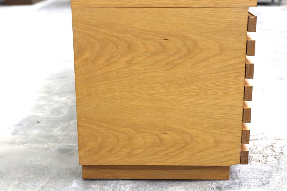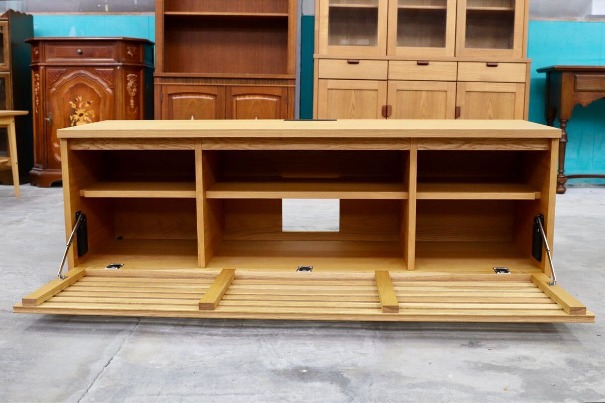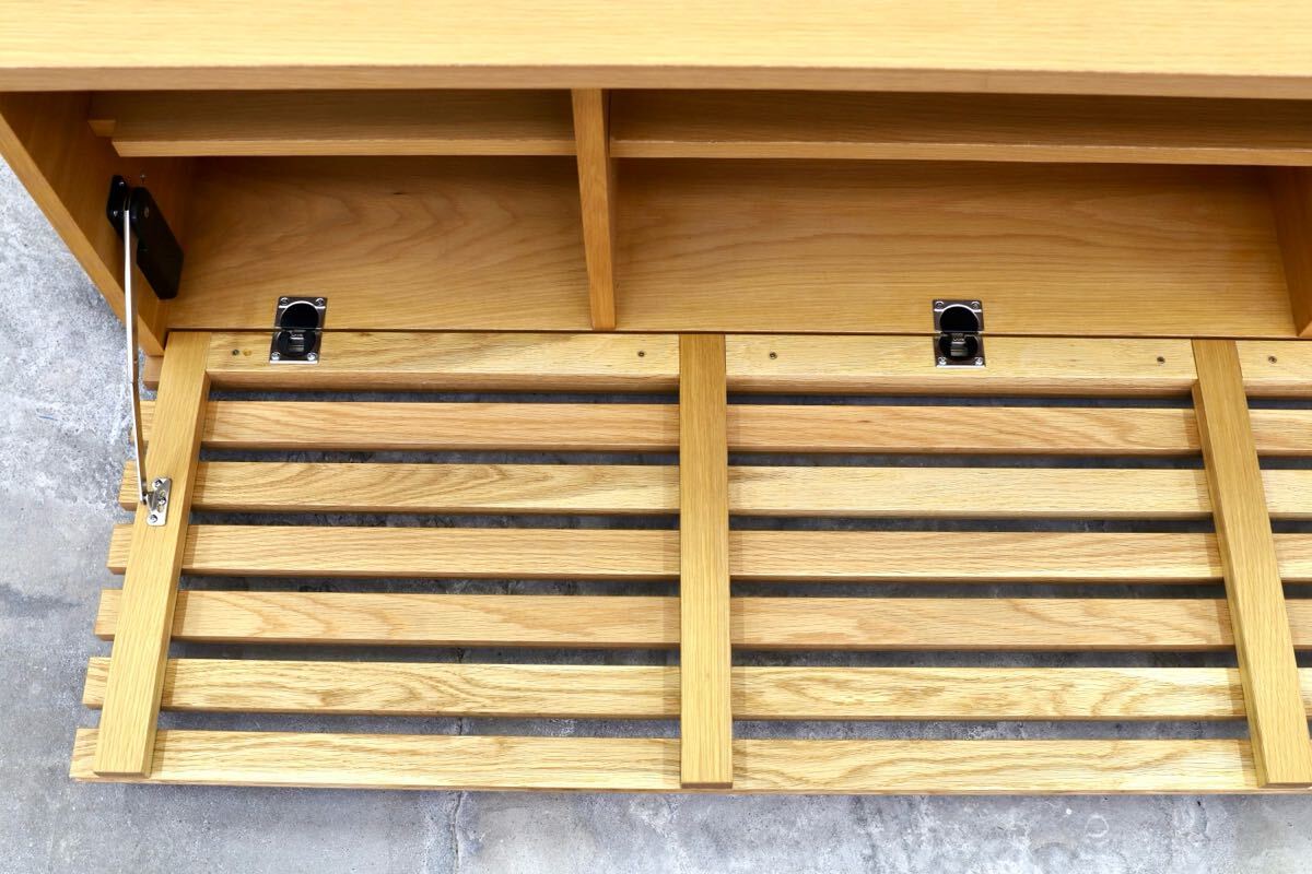 前面にオーク無垢材を使用したスラットデザインが美しいテレビボード。北欧スタイルな家具とも良い相性です。