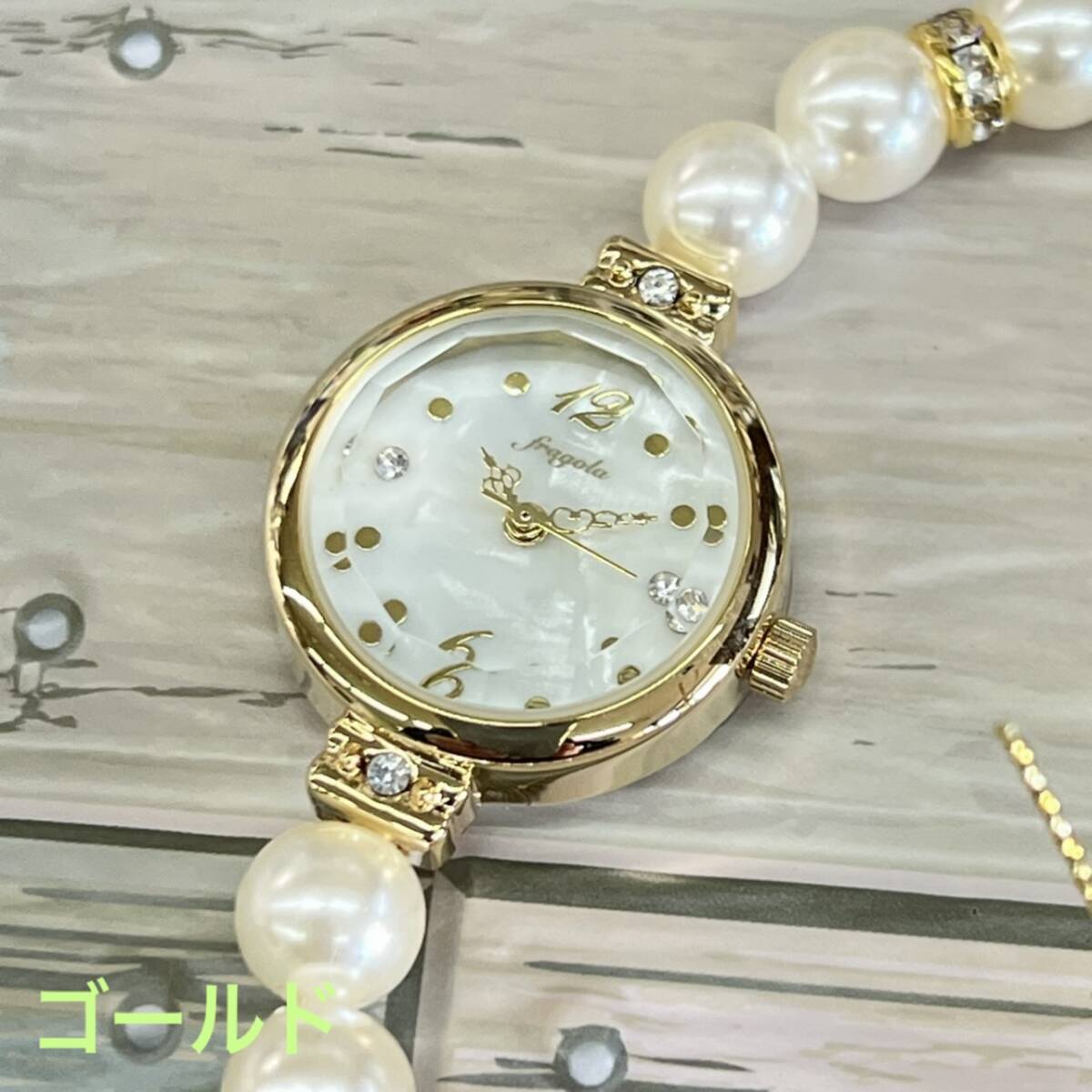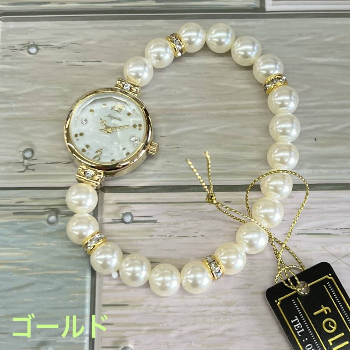 送料無料★新品 正規保証付き★follow レディース腕時計 パールタイプ 伸縮ブレスレットウォッチ ゴールド★ギフト プレゼントに