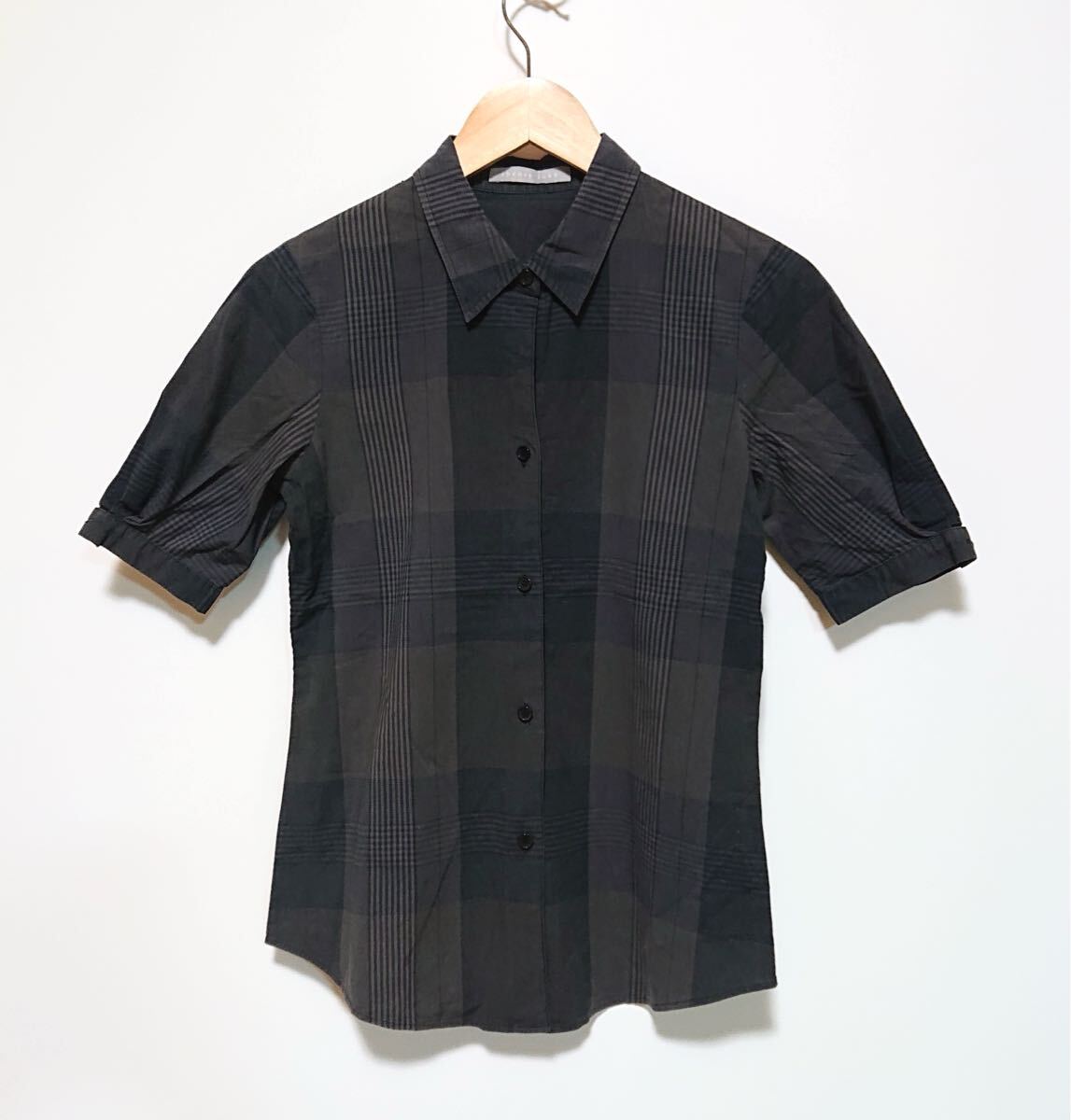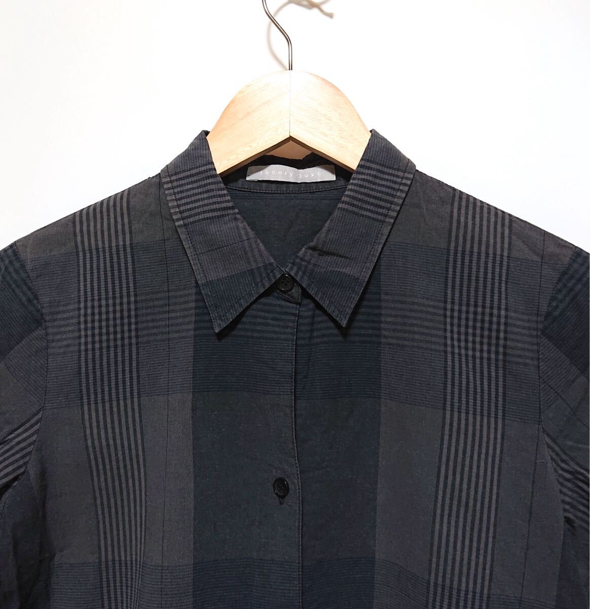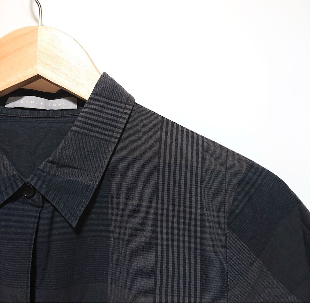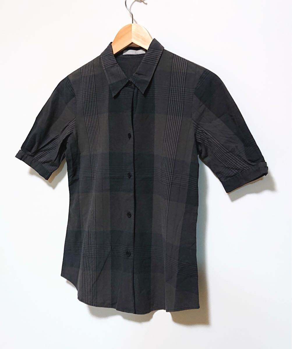 h2968gg theory luxe/セオリーリュクス サイズ38(S〜M位) 半袖シャツ チェック柄 グレー系 レディース 春夏トップス 着まわしコーデ お洒落