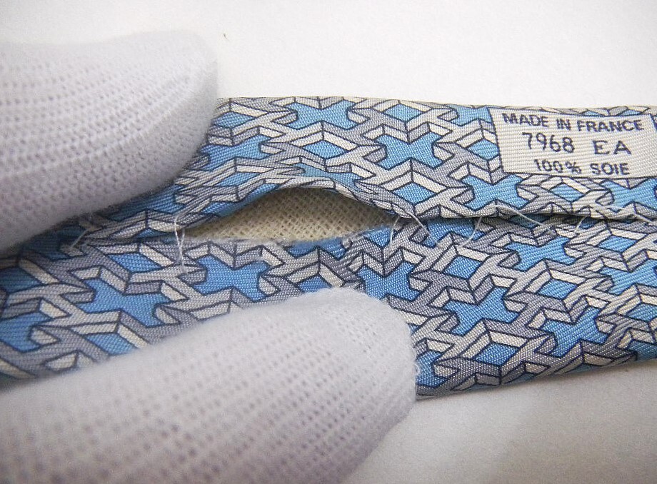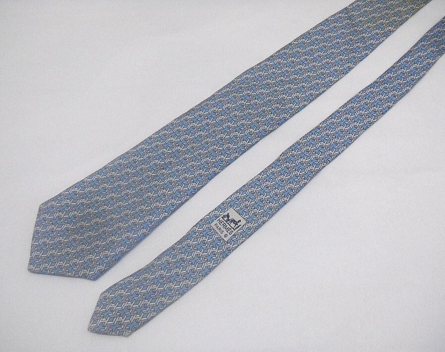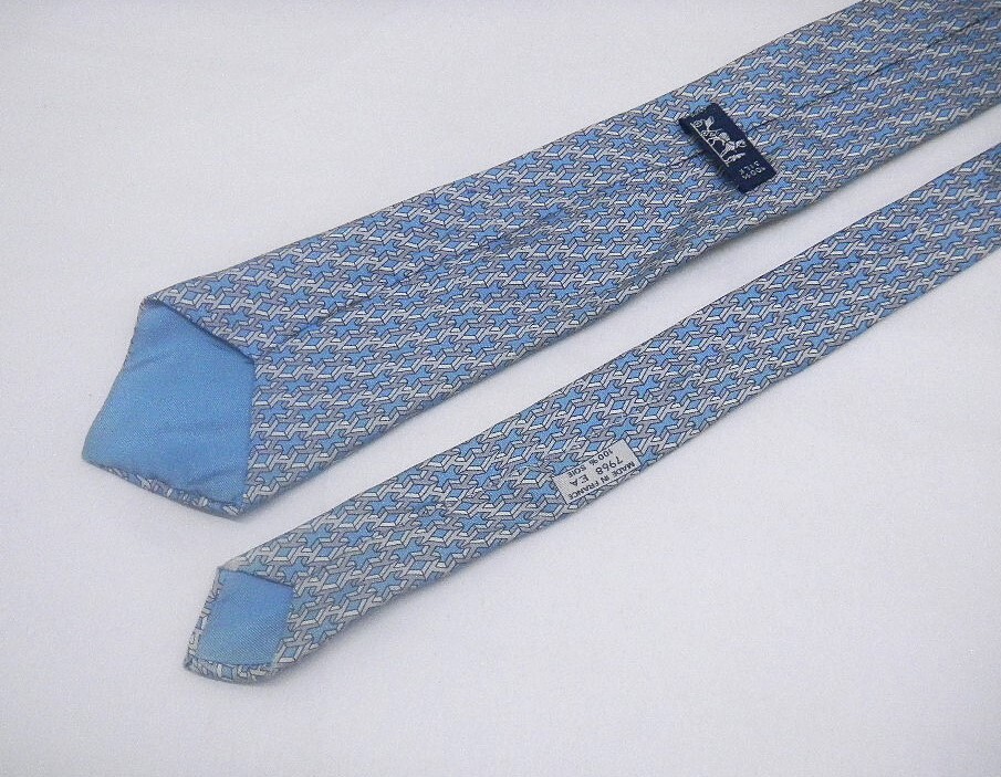 中古 HERMES エルメス ネクタイ 注.1おまとめ取引で同梱の場合、送料は異なります。 なお、レターパック、定形外郵便発送は、同梱する商品によっては、 発送できませんので、ご了承ください。 注.2定形外郵便発送の場合は、小さく折りたたんで パッキンし普通の茶封筒に入れての梱包になります。 【価格】不明 【製造】MADE IN FRANCE 【素材】シルク100% 【カラー】薄いブルー系 ※色の表現は個人の主観的で多少違いがあるかもしれませんので、ご了承ください。 【サイズ】約142×8.5×4cm 【質量】約38.7g 【付属品】ありません。 【状態】目立つ汚れ、シミはありませんが、折り目、カタクズレ、シワ、ほつれ、糸のゆるみや切れがあります。 現状でのお渡しとなり、折りたたんでの梱包になります。 なお、画像と実物の色やサイズは、やや異なる場合があり、写りこみもあります。 中古(保管)品のため、商品自体のにおいについては、ご理解お願い致します。 【コメント】 知識がありませんので専門的な質問の場合は、詳しくどこを確認するかをおしえていただければ、 何とか回答いたします。よろしくお願いいたします。 説明不足があると思いますが、詳細をよく読んで、 ご理解、ご了承していただいた上での、ご入札をお願いいたします。 【料金表】