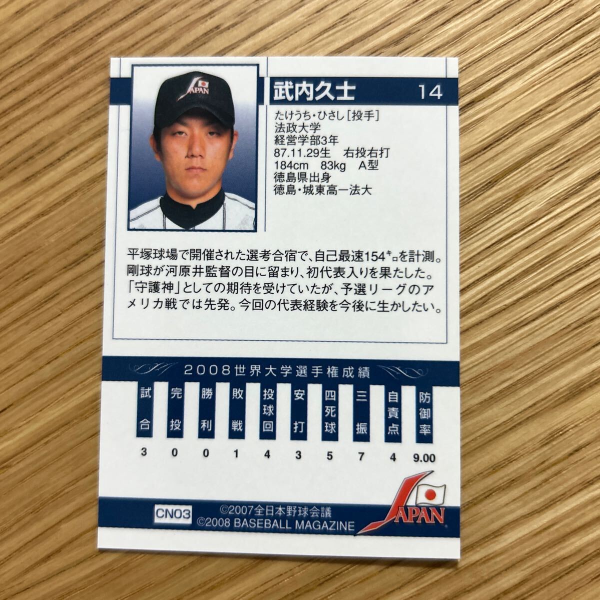 2008BBM CN03 武内久士 大学野球日本代表