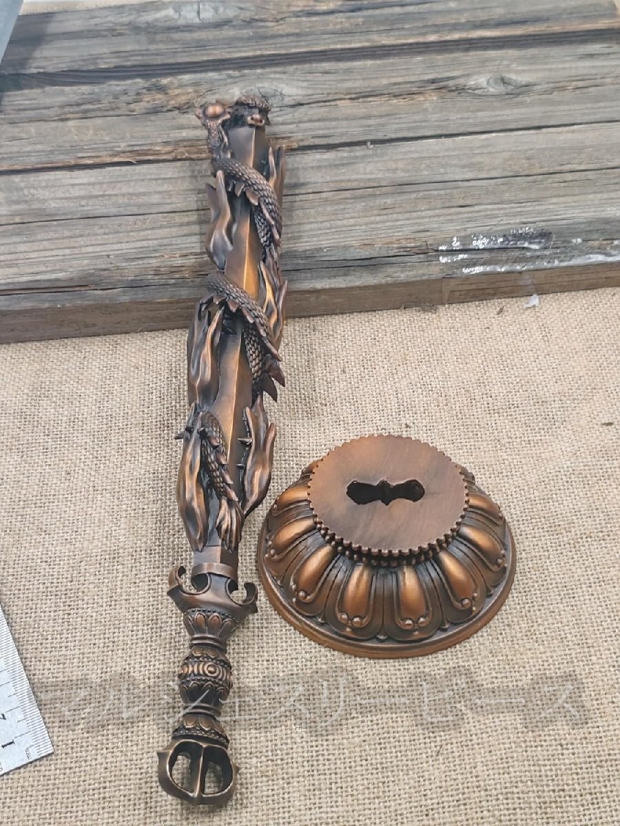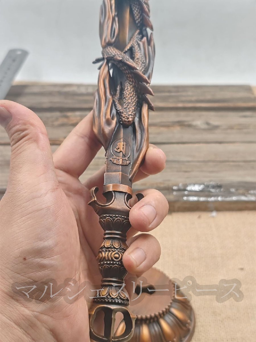 龍の置物 倶利伽羅龍王 風水 倶利伽羅剣 龍剣 真鍮 縁起物 高さ約38cm