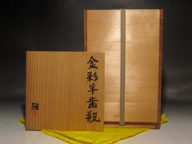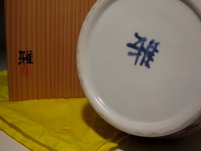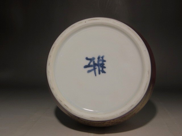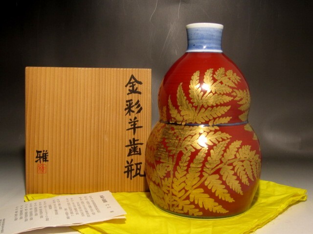 内田雅(近藤悠三の弟子)作、金彩羊歯瓶です。 美しく大変趣のある逸品です。 底面に銘があります。