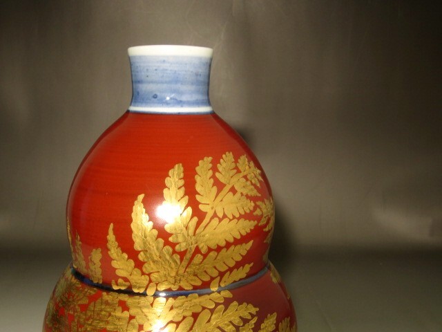 内田雅(近藤悠三の弟子)金彩羊歯瓶 美しい景色 s260
